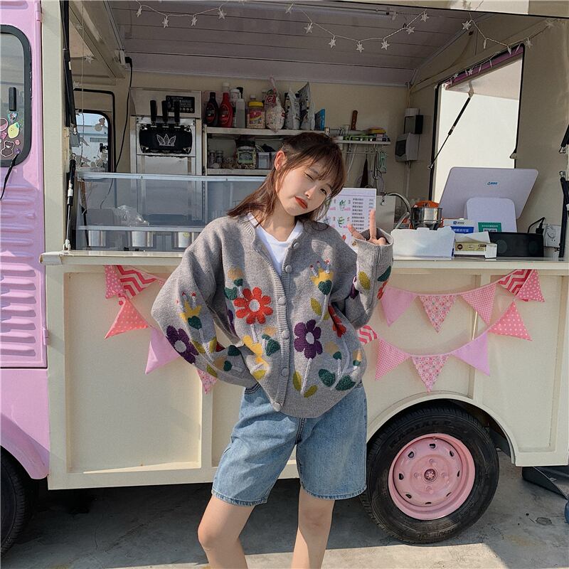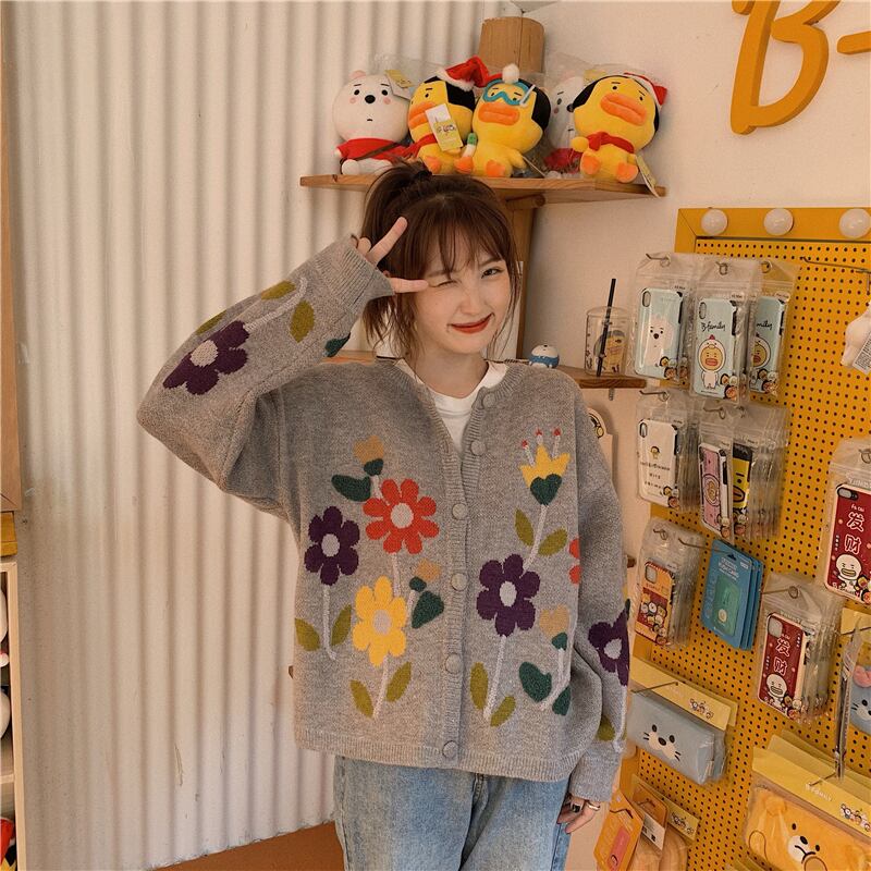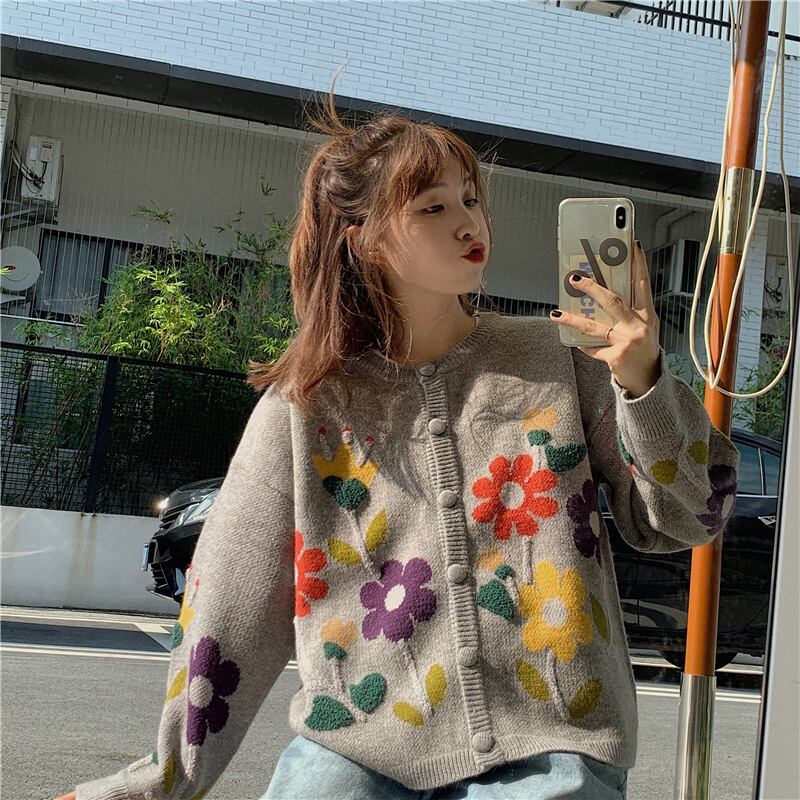 スタンダードスタイルジャカードカーディガンセーター コート 秋物ルーズトップス ロング レトロ オータム 長袖 ミドル丈 MONROE71485501403