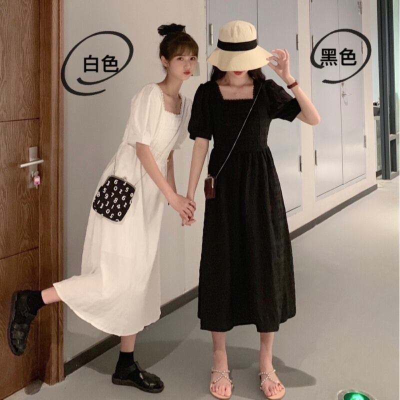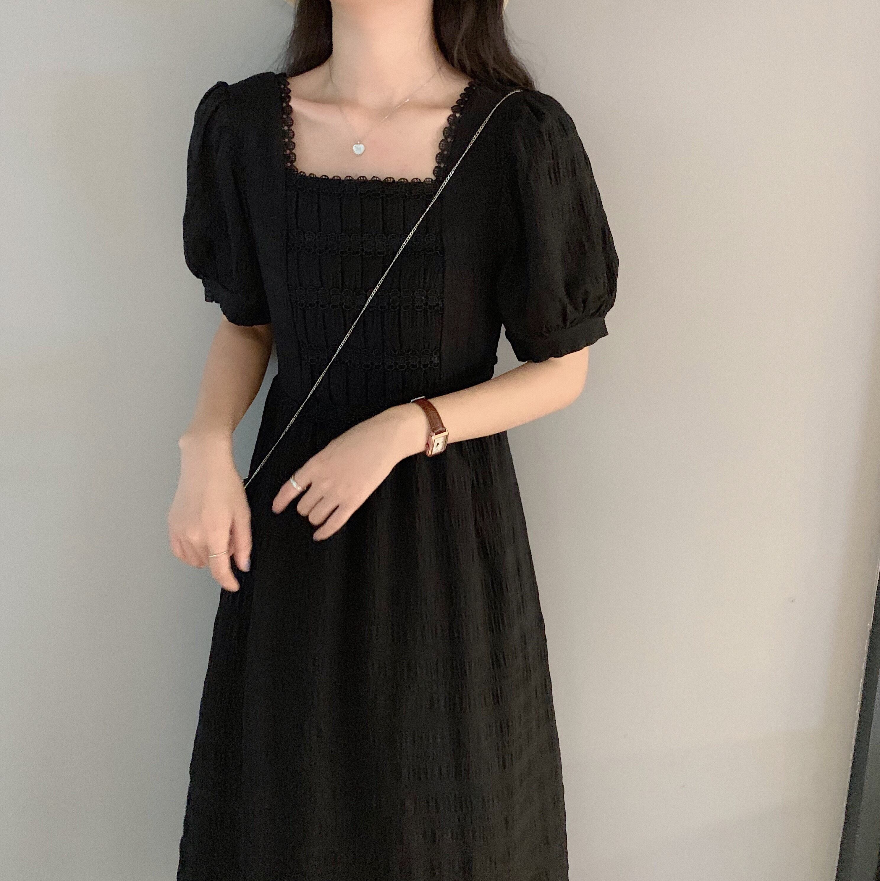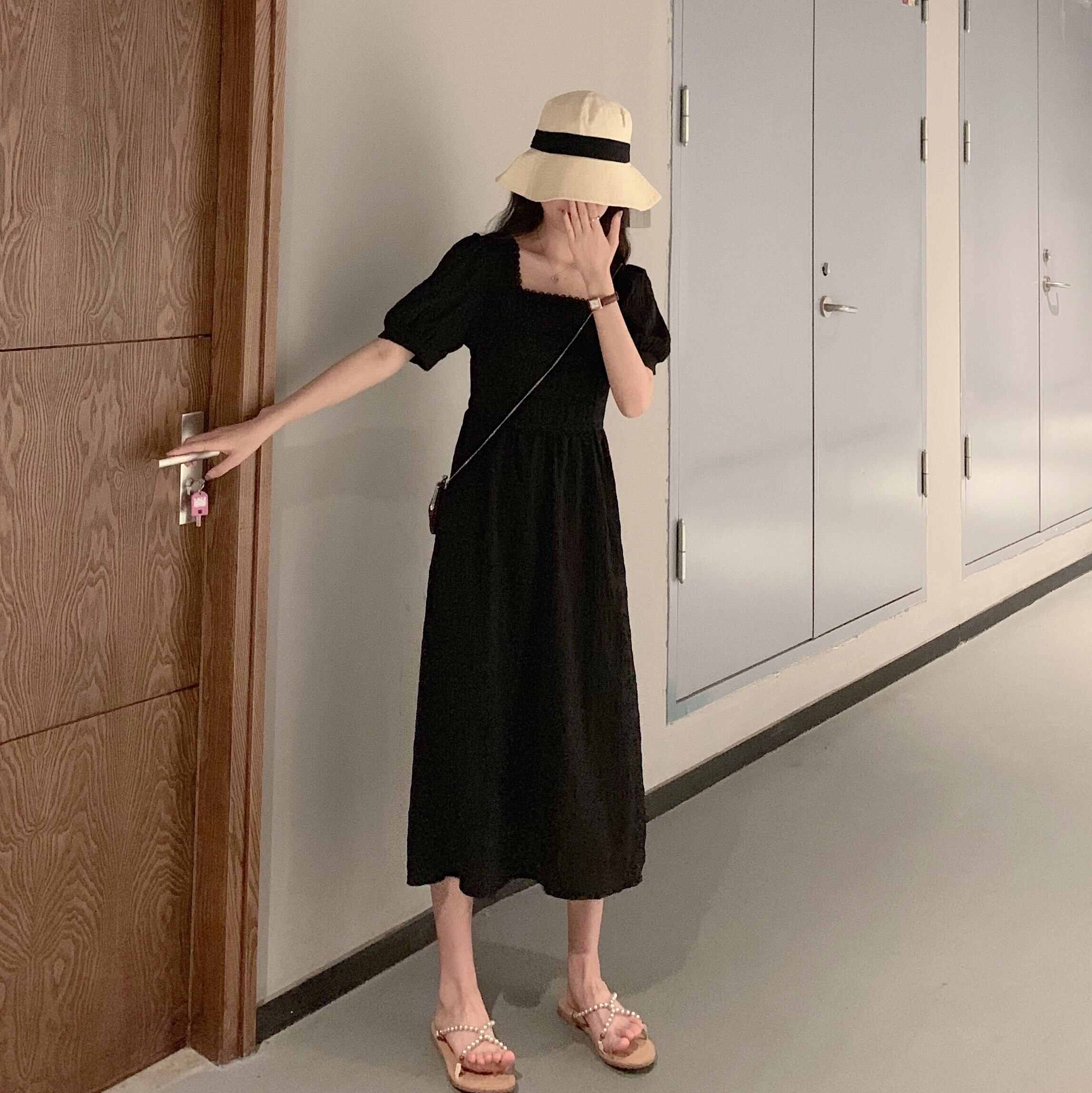 ブラックミニ ワンピースワンピースレディース夏服韓国ファッションハイウェスト薄手Aラインスカート ショート 夏物 スクウェア スタイル ウエスト YY65063361385