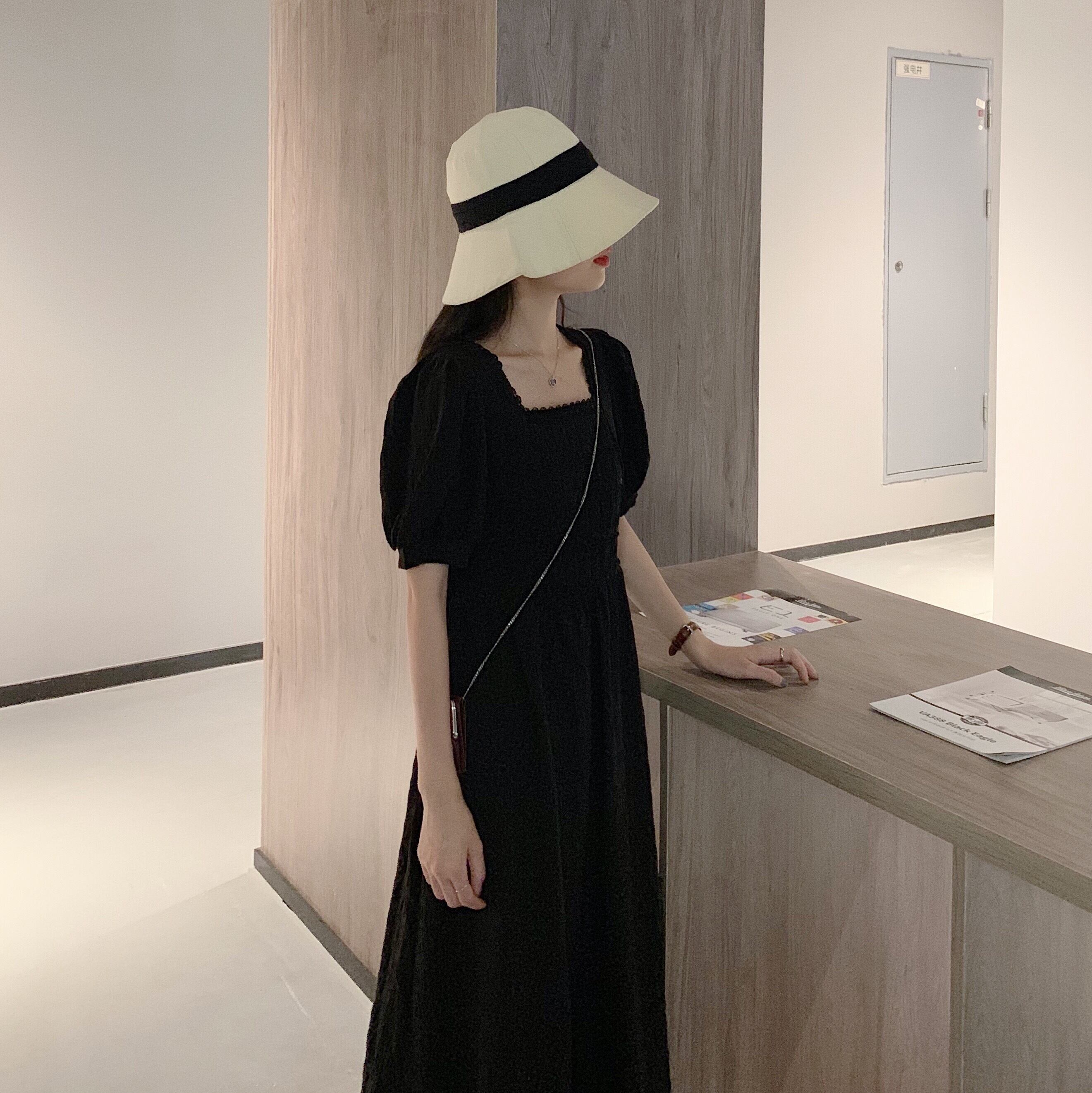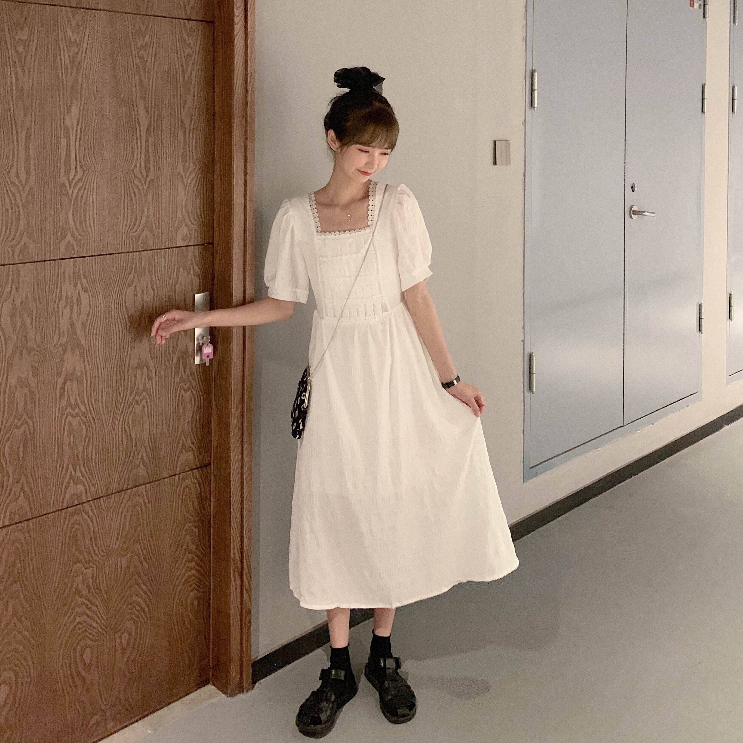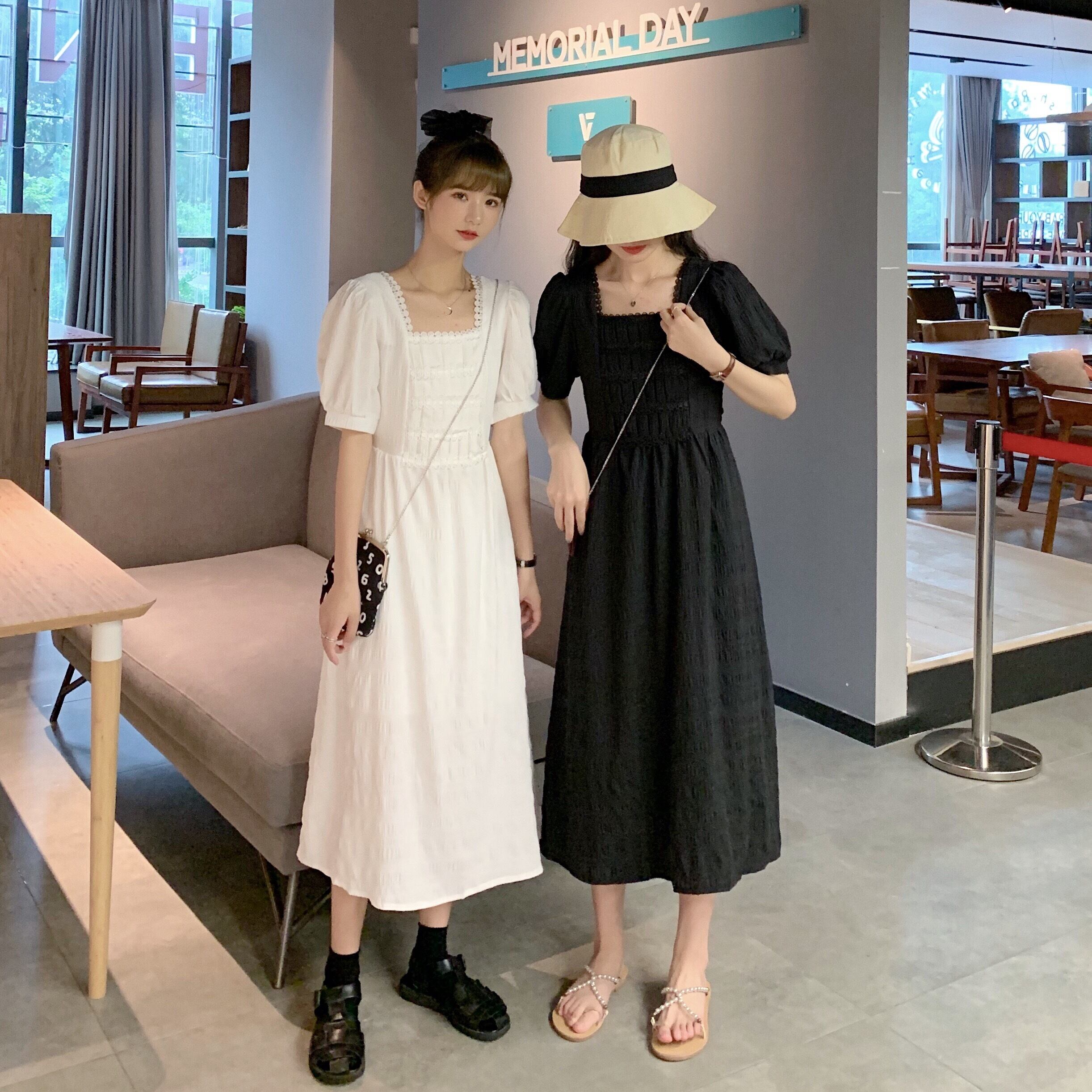 ブラックミニ ワンピースワンピースレディース夏服韓国ファッションハイウェスト薄手Aラインスカート ショート 夏物 スクウェア スタイル ウエスト YY65063361385