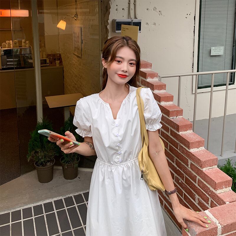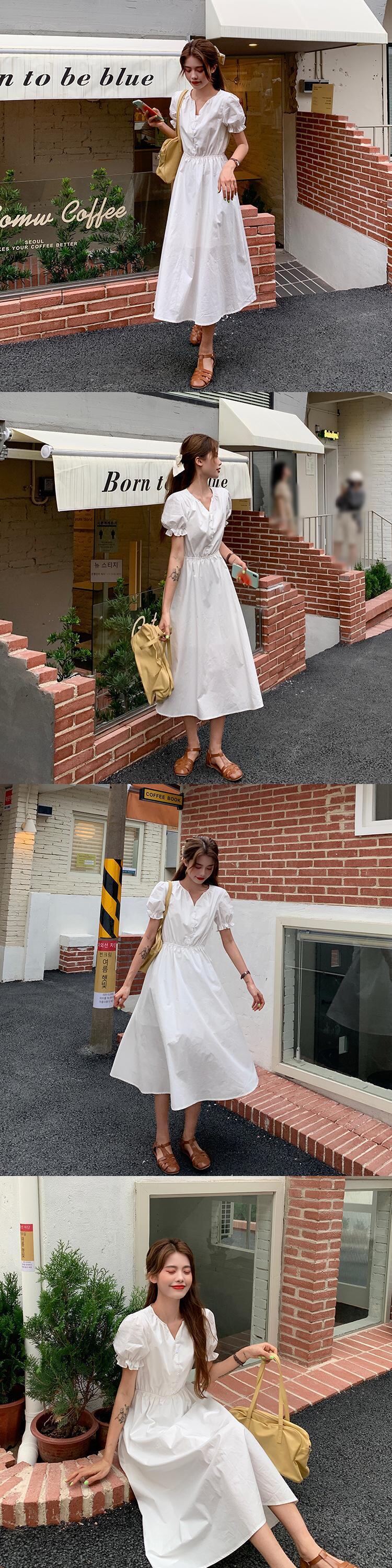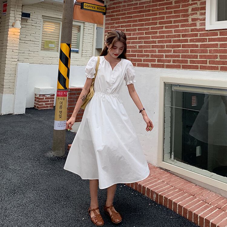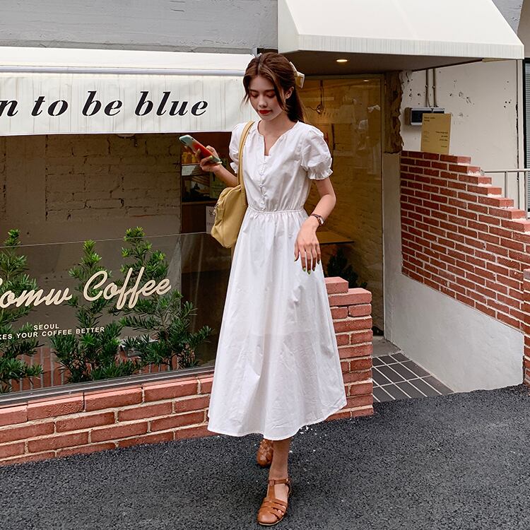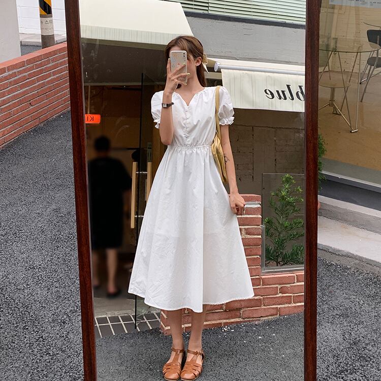 ホワイトスリーブワンピースレディース夏服ウェスト薄手ロングスカート 夏物 ウエスト YY22616453058