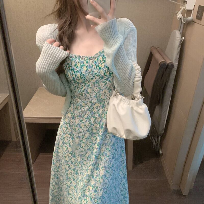韓国ファッションプリーツハイウェストシフォンスタイルワンピースニットジャケット レディース 大人ガーリー スウィート キュート カジュアル ウエスト YY97097125945