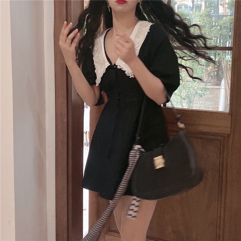 薄手カラーブラックスカート 夏服スリーブワンピース 夏物 YY8740296585