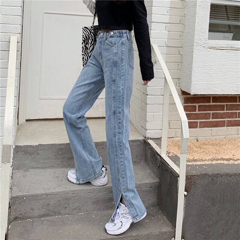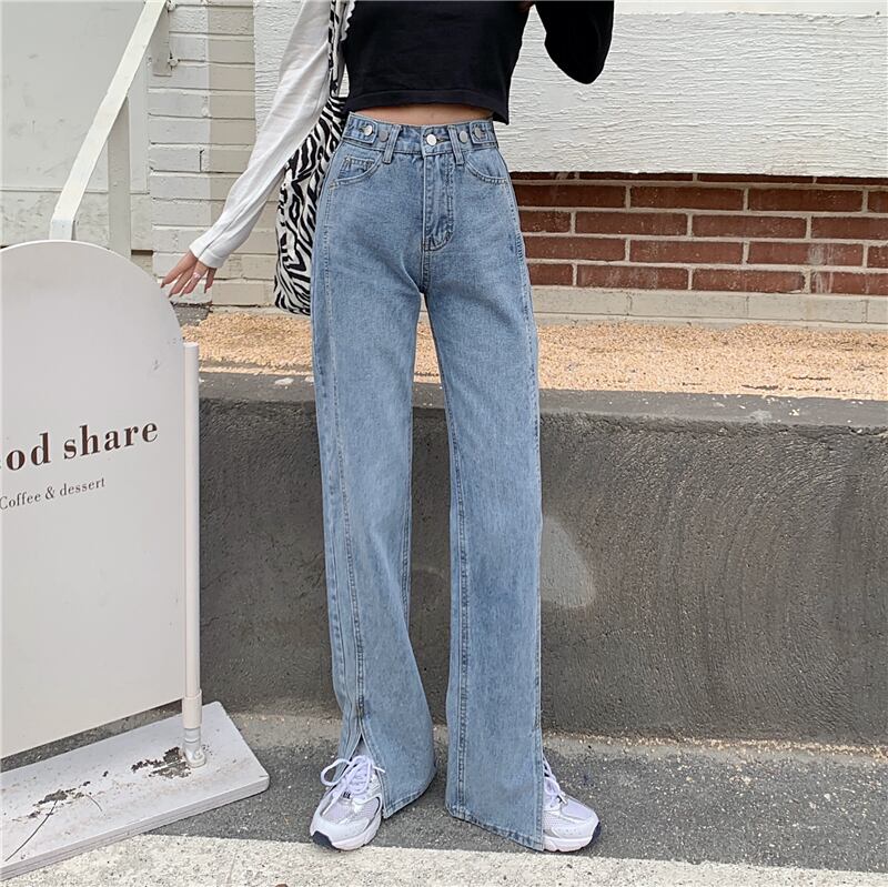 スリムジーンズ 夏服ハイウェストルーズスリットパンツ レディース 夏物 ウエスト YY5635645771