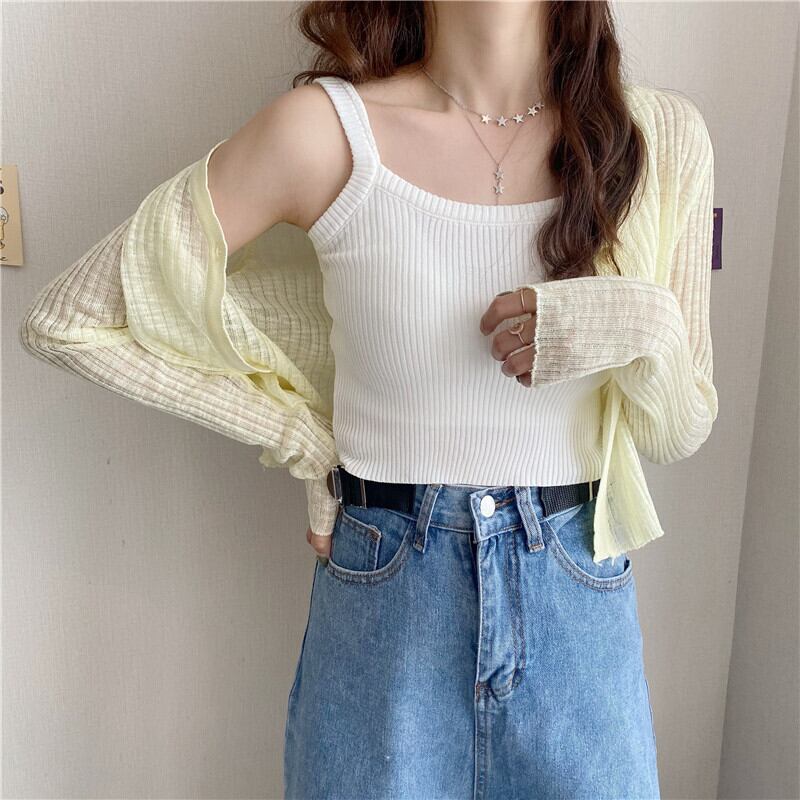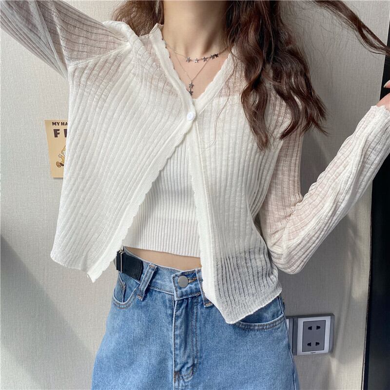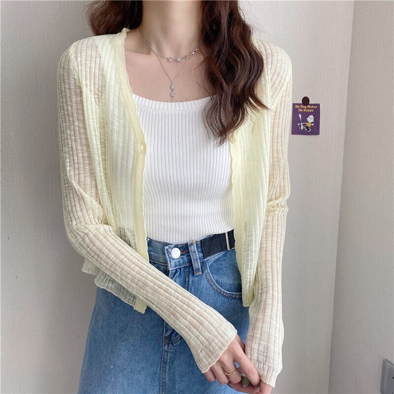 セーター カーディガンVネックレディース夏服韓国ファッションスリムブラウス ロング 夏物 スタイル 長袖 YY94632716297