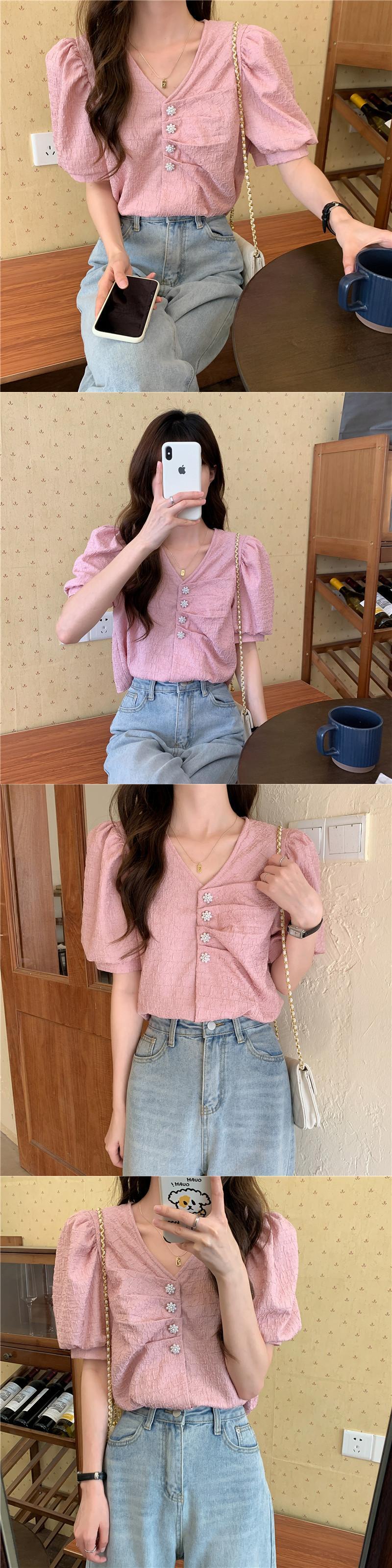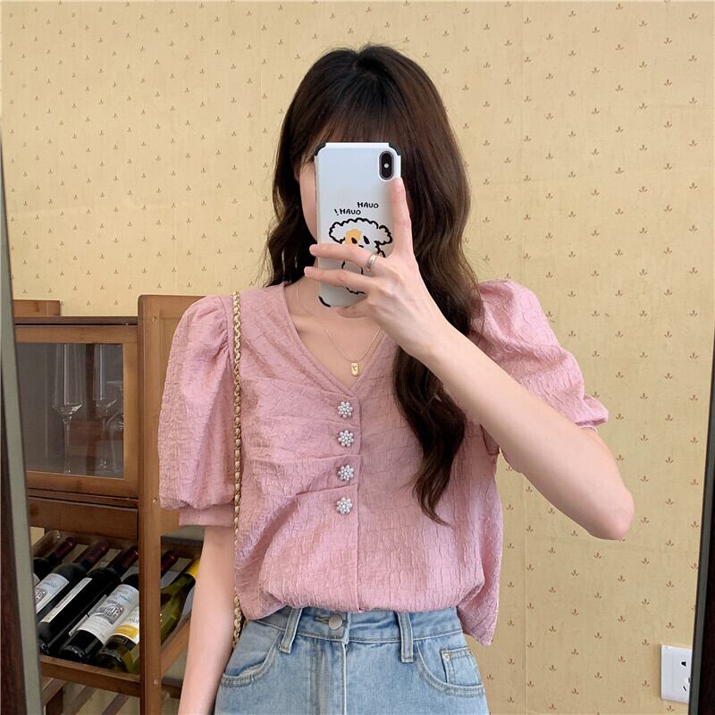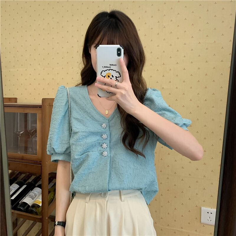 シャツ 夏服薄手Vネックスリーブスリムトップス 夏物 YY34295163478