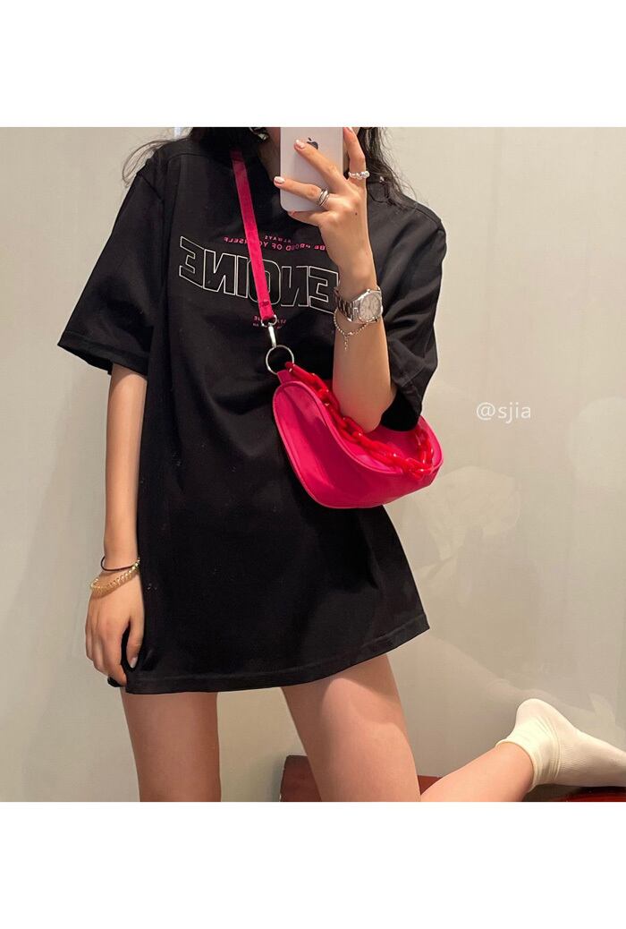スタイルブラックTシャツレディーストレンド夏服ルーズトップス ストリート 原宿 夏物 ミドル丈 YY69414336851