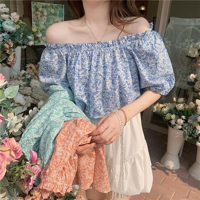 夏服韓国ファッションフローラルカラープルオーバー シフォンシャツ トップス 夏物 花柄 スタイル YY19821346346