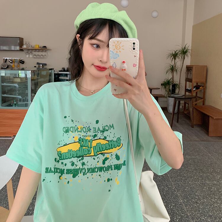 夏服韓国ファッションルーズプリントスタイルTシャツトップス レディース 夏物 ボーイズ ミドル丈 YY17775565670