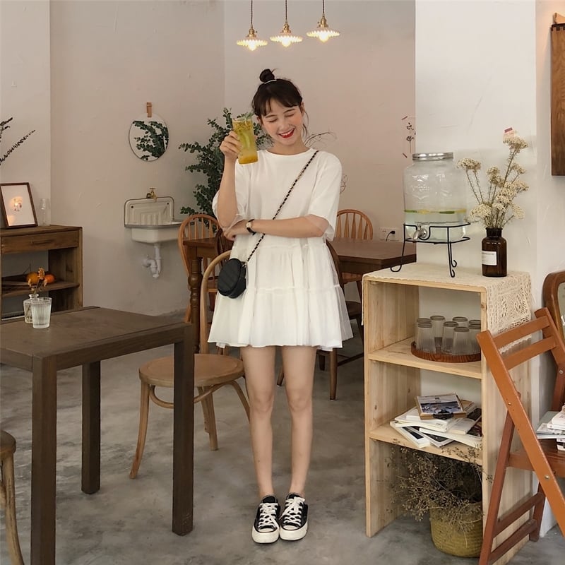 ワンピースレディース夏服スタイルホワイト 大人ガーリー スウィート キュート カジュアル 夏物 ミドル丈 YY87507207435