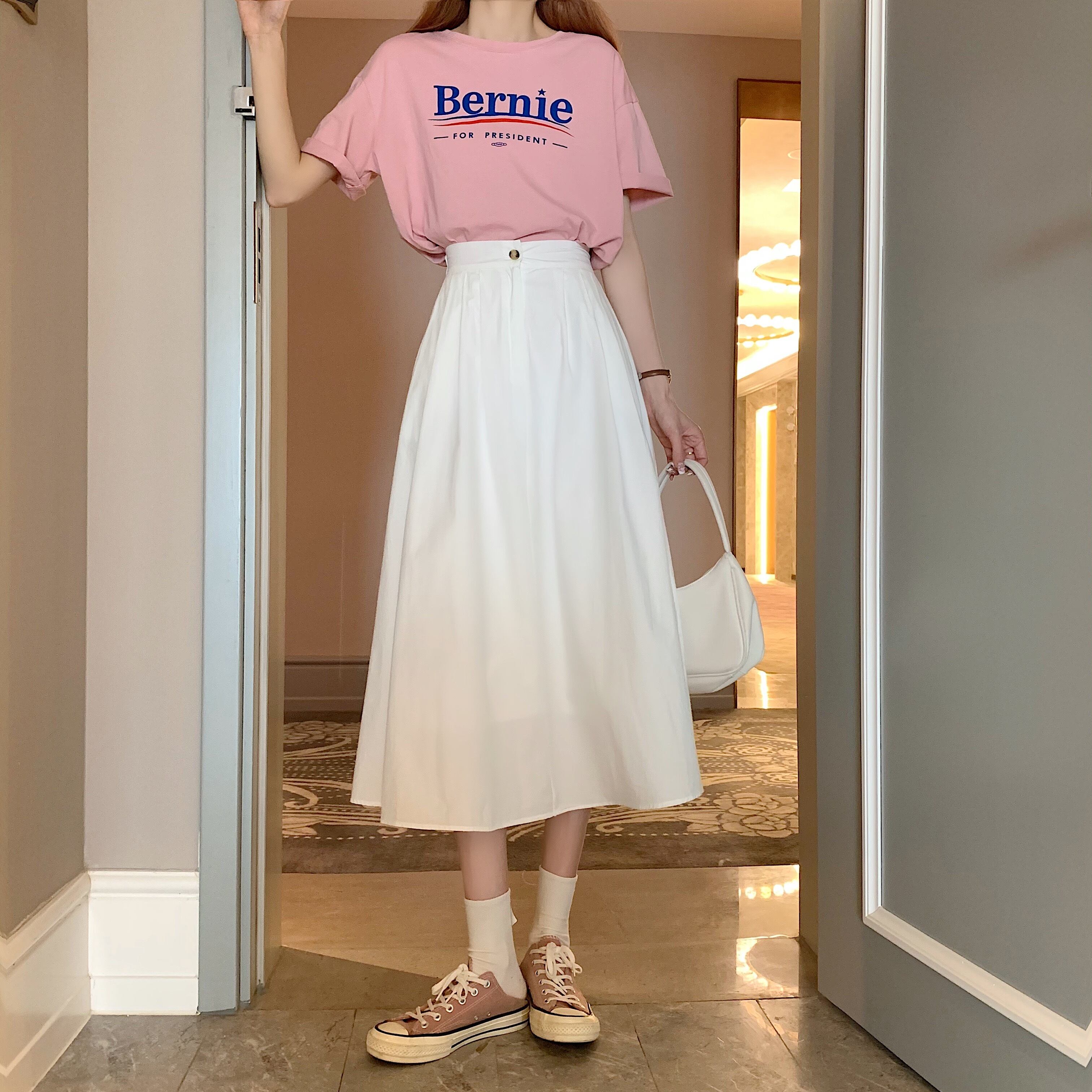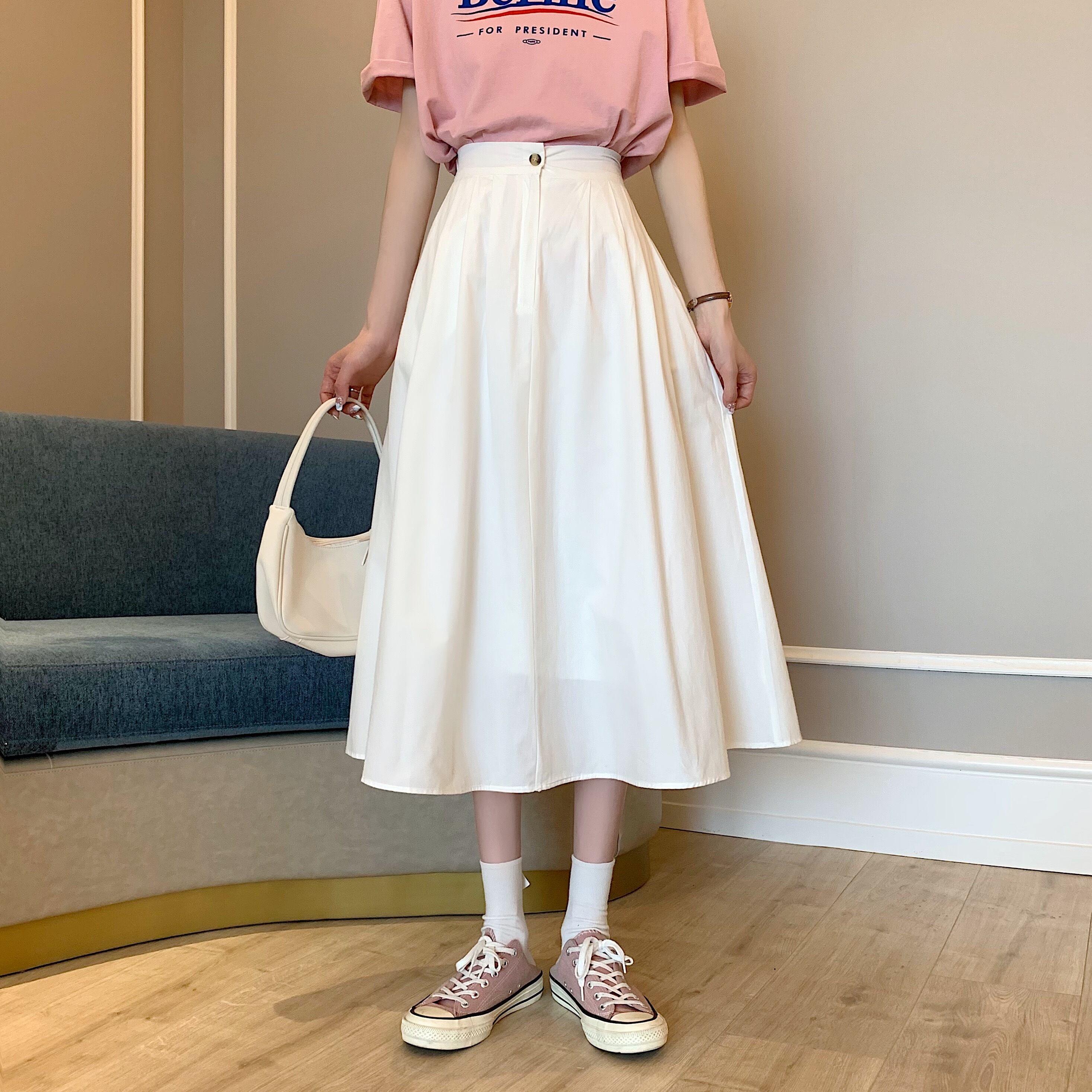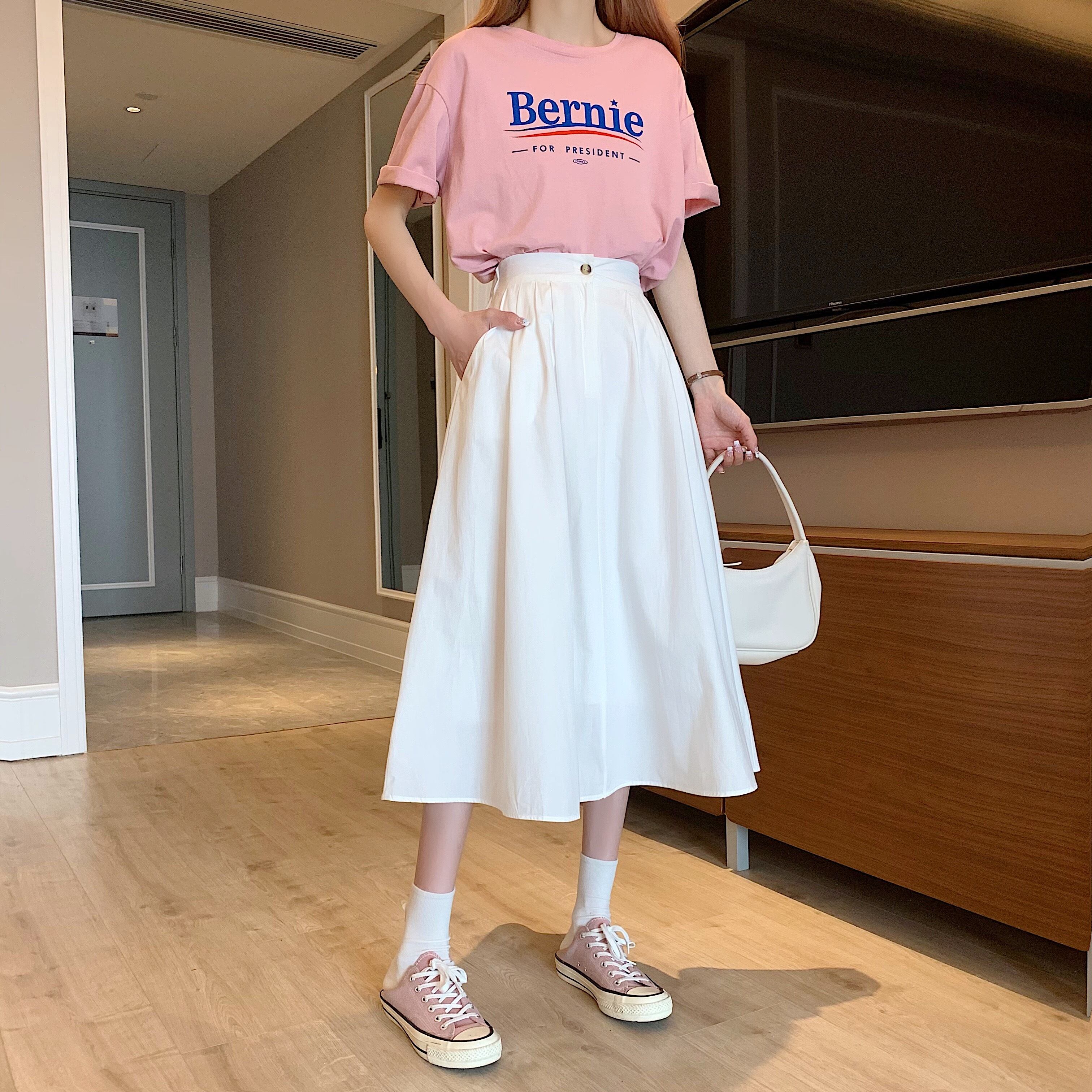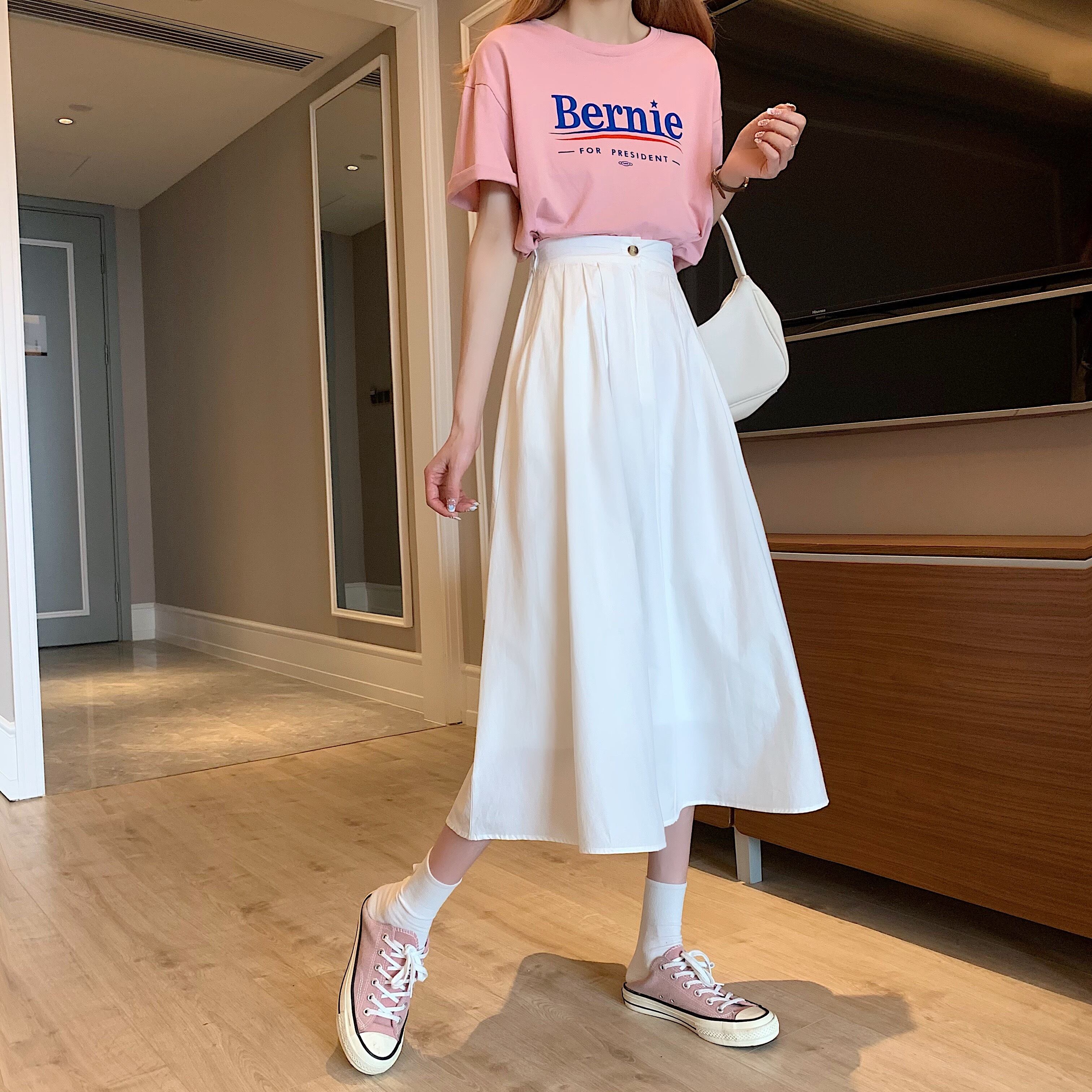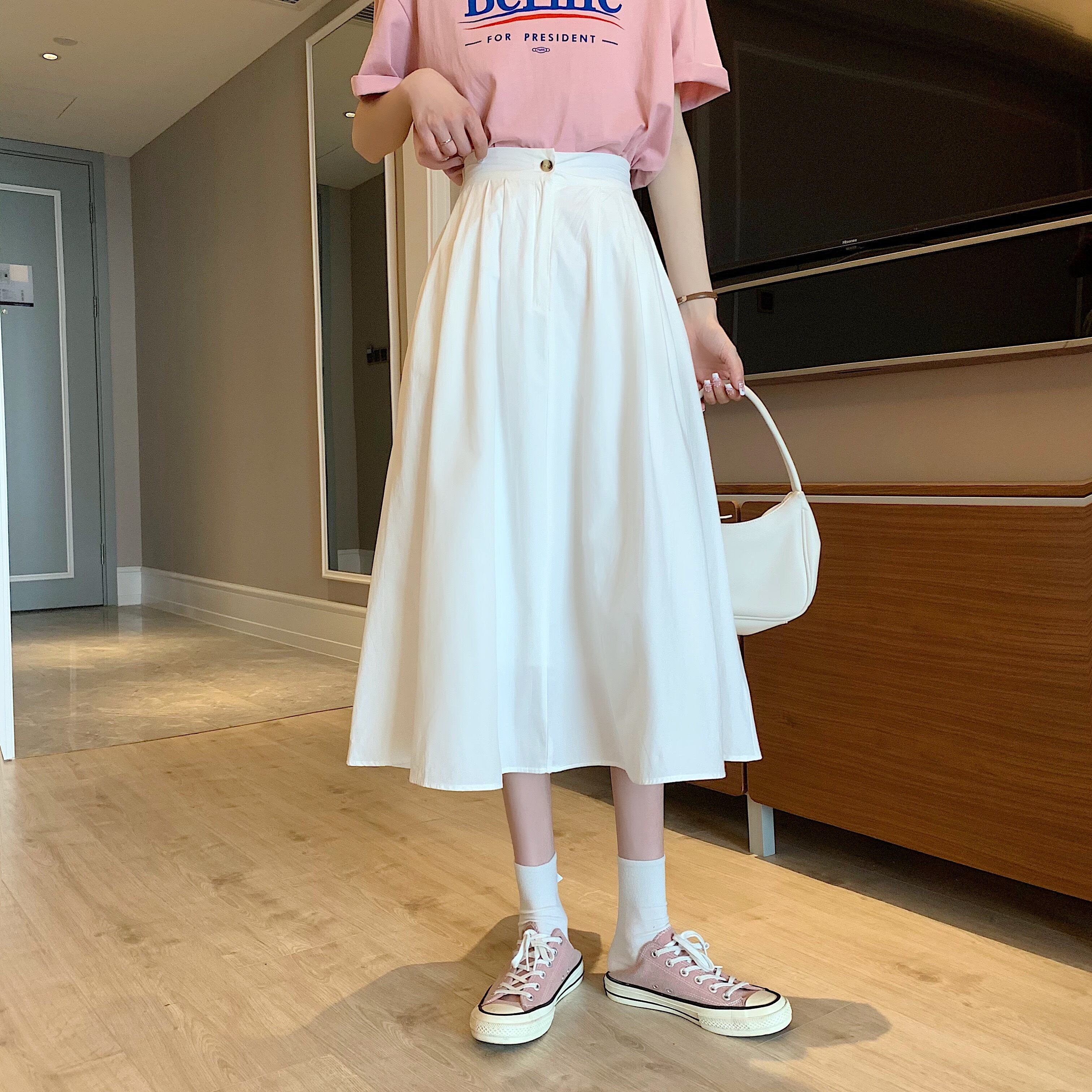 ホワイトスカート Aライン薄手夏服ハイウェストウェストロング 夏物 ウエスト ミドル丈 SYJ4091788927