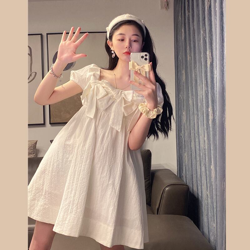 ホワイトカラーワンピースレディース夏服スタイルショートスカート 夏物 スクウェア SYJ37378566065