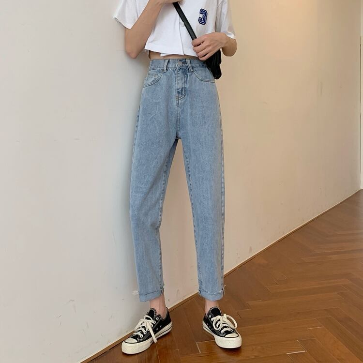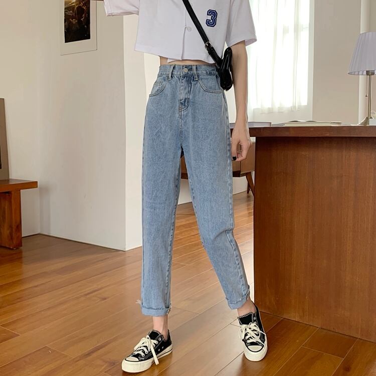 ジーンズ 夏服薄手韓国ファッションハイウェストスリムパンツ ルーズ 夏物 スタイル ウエスト YY44896474751
