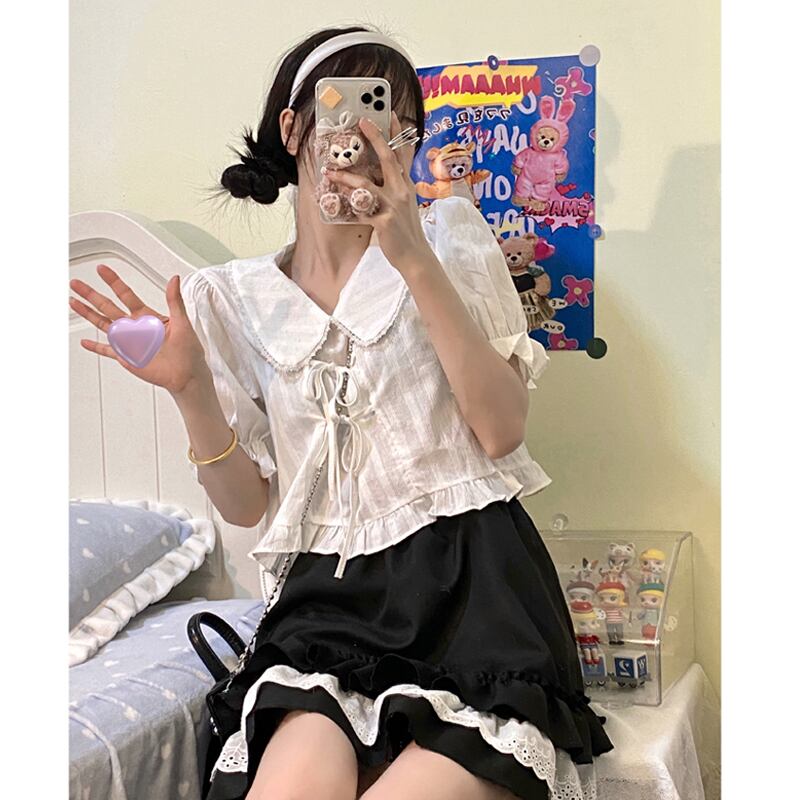 夏服ブラウス 韓国ファッションスタイルスタンダードスカート レトロ ストリート 大人ガーリー スウィート キュート カジュアル 夏物 SYJ59669873571