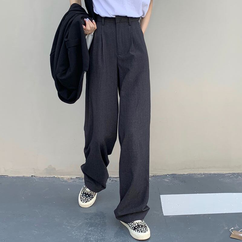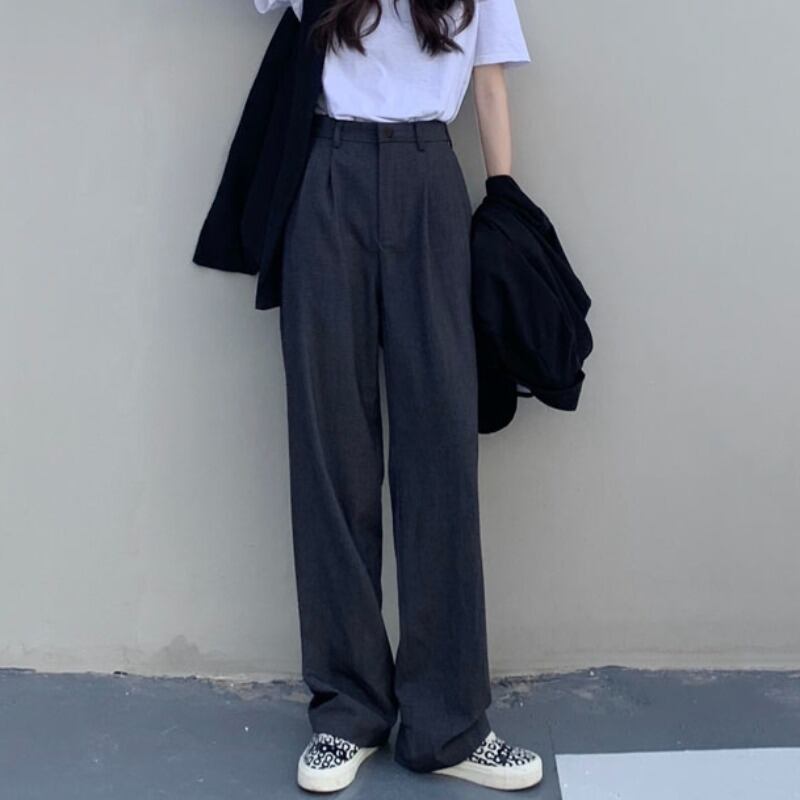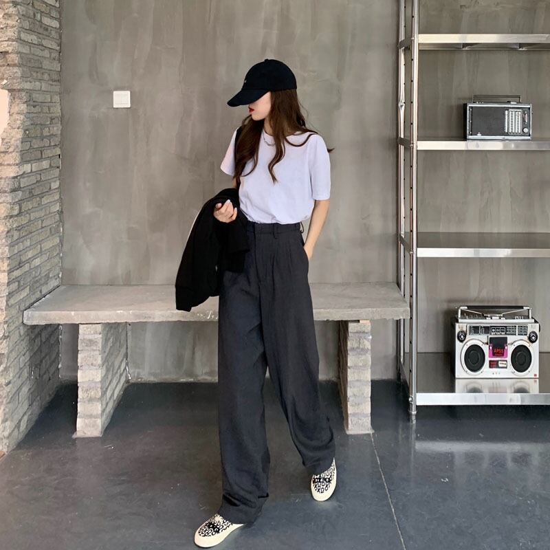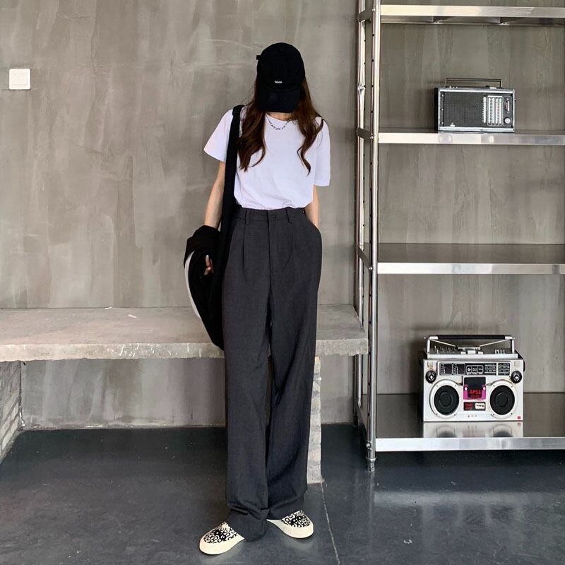 ブラック薄手ハイウェスト韓国ファッションルーズカジュアル スタイル ウエスト YY80741528442