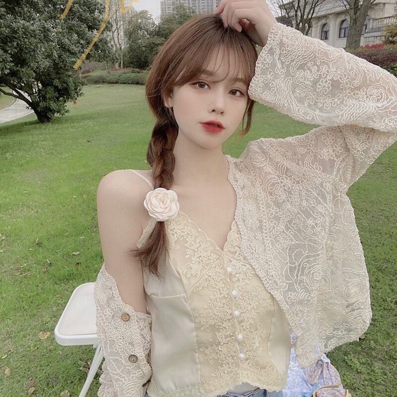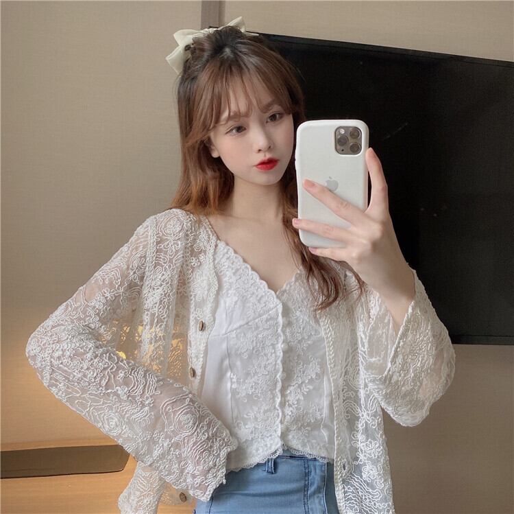 薄手夏服カーディガンジャケット スタイルショールショートトップス レースシャツ 夏物 SYJ94161905720