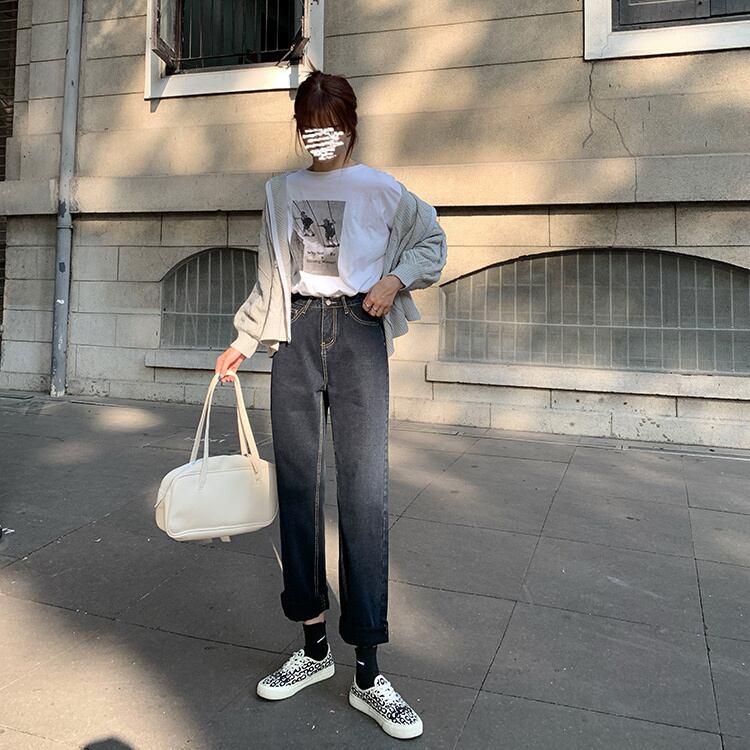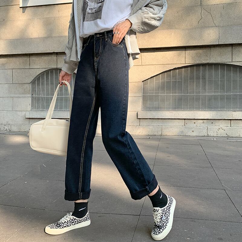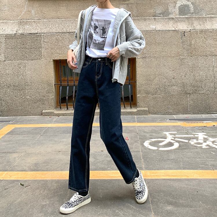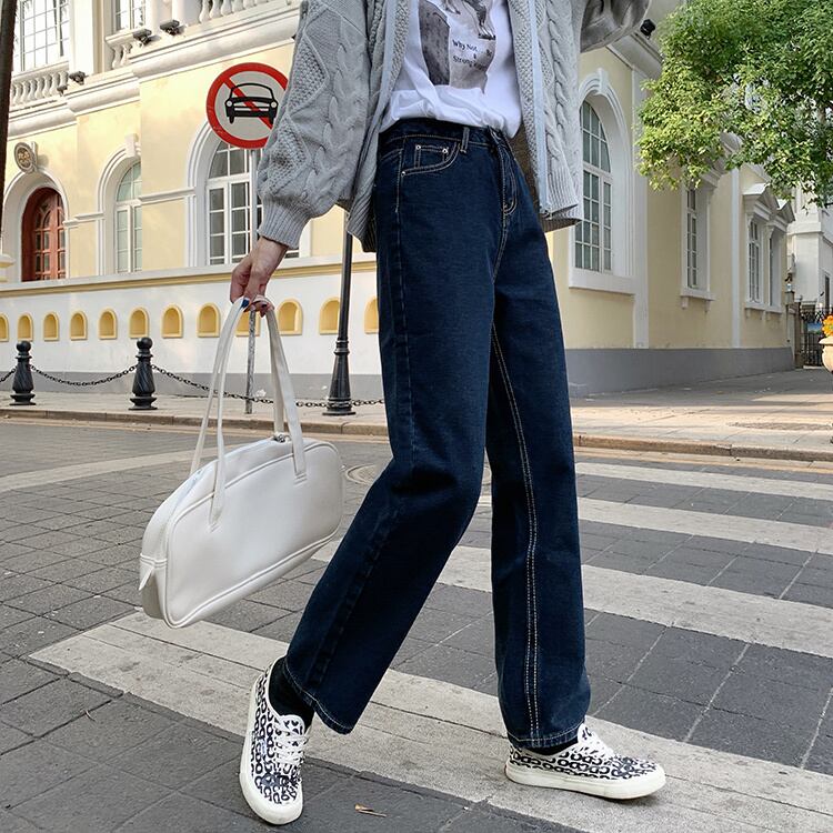 ダークブルージーンズ ルーズスプリング秋物ハイウェストウェストスリムパンツ トレンド 春物 オータム ウエスト SYJ49262404927