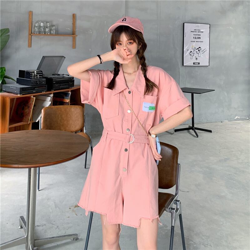 ジャンプスーツ オールインワン レディース夏服ワンピースハイウェスト ピンク 夏物 ウエスト SYJ73476344862