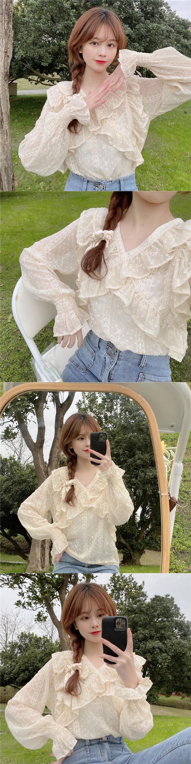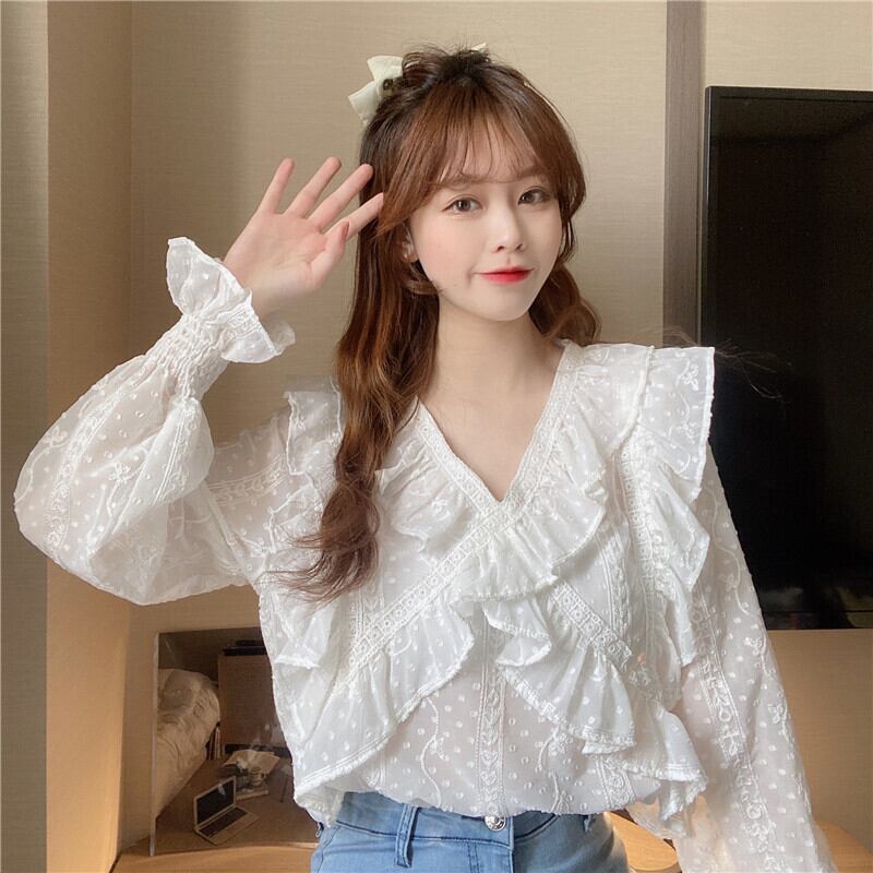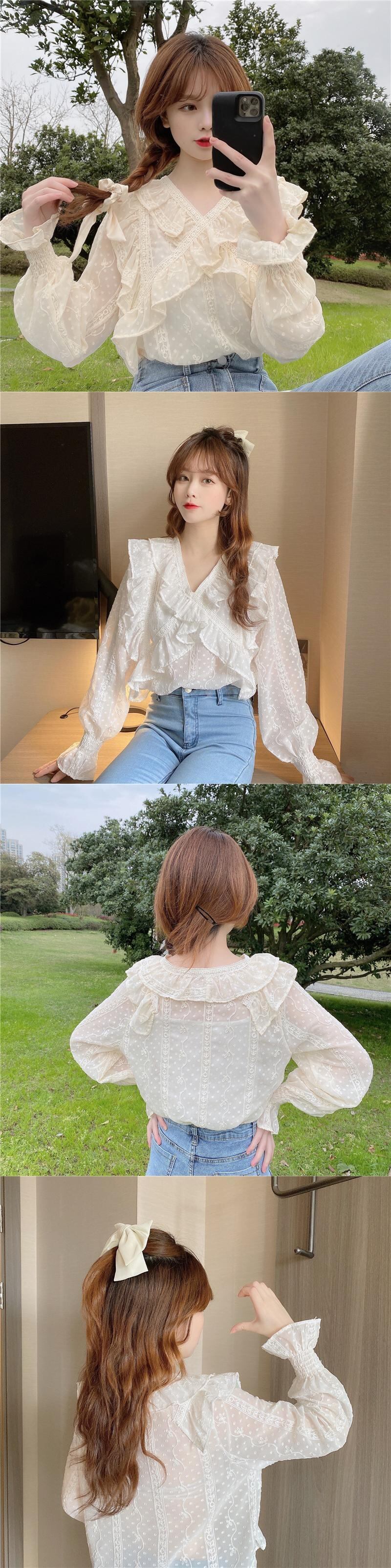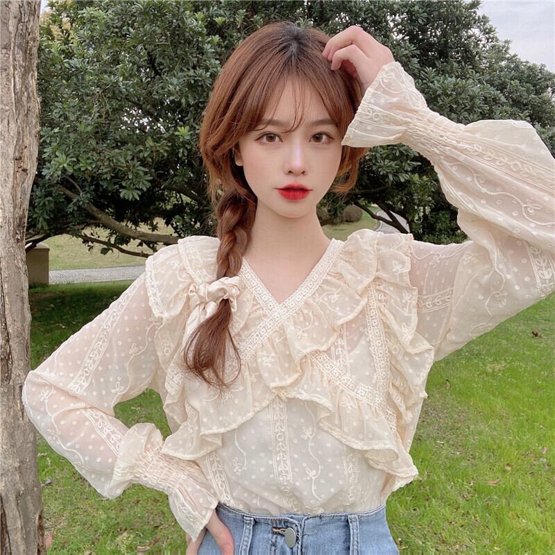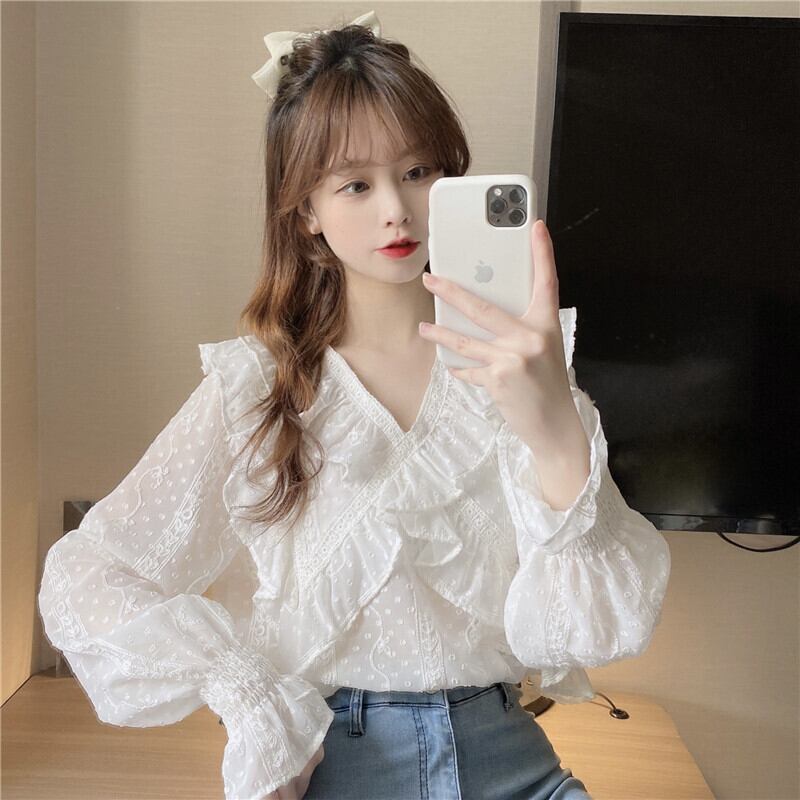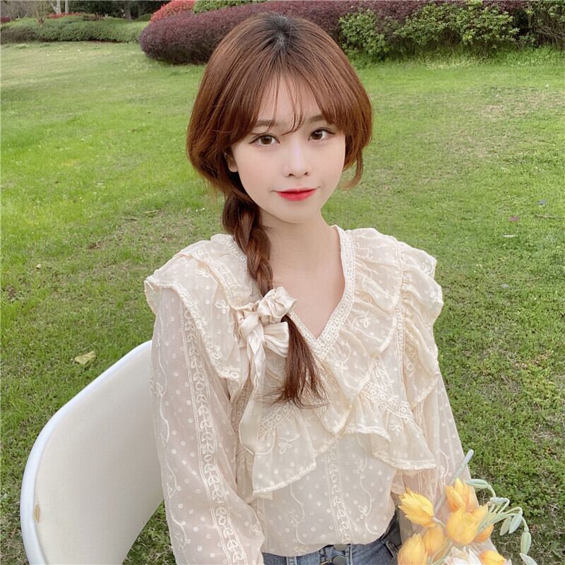 ブラウス スプリング薄手シフォンシャツ レディース長袖スリーブ ロング 大人ガーリー スウィート キュート カジュアル 春物 SYJ29893207634