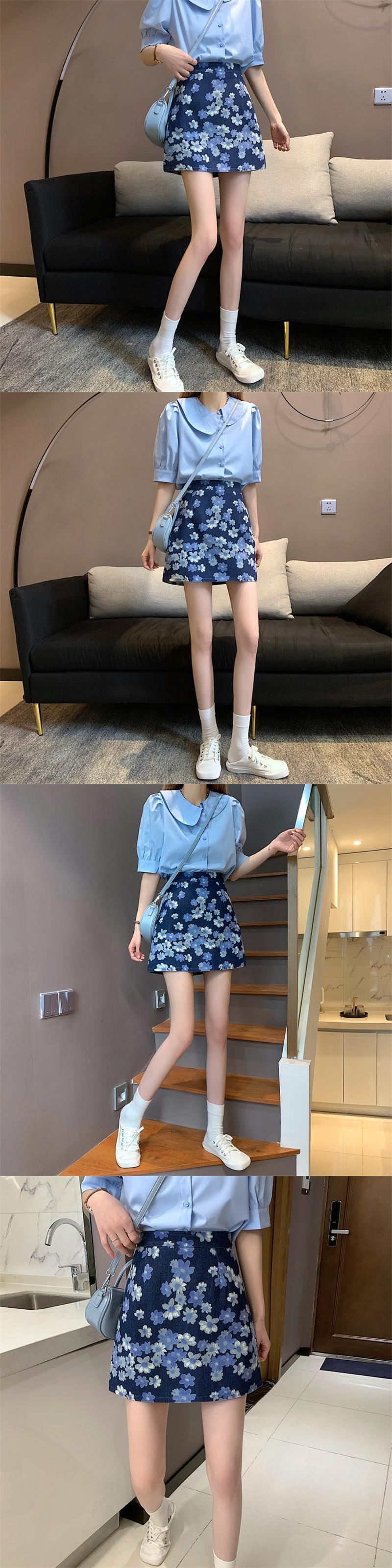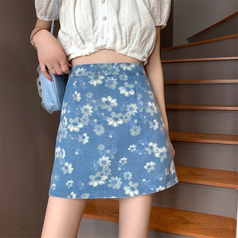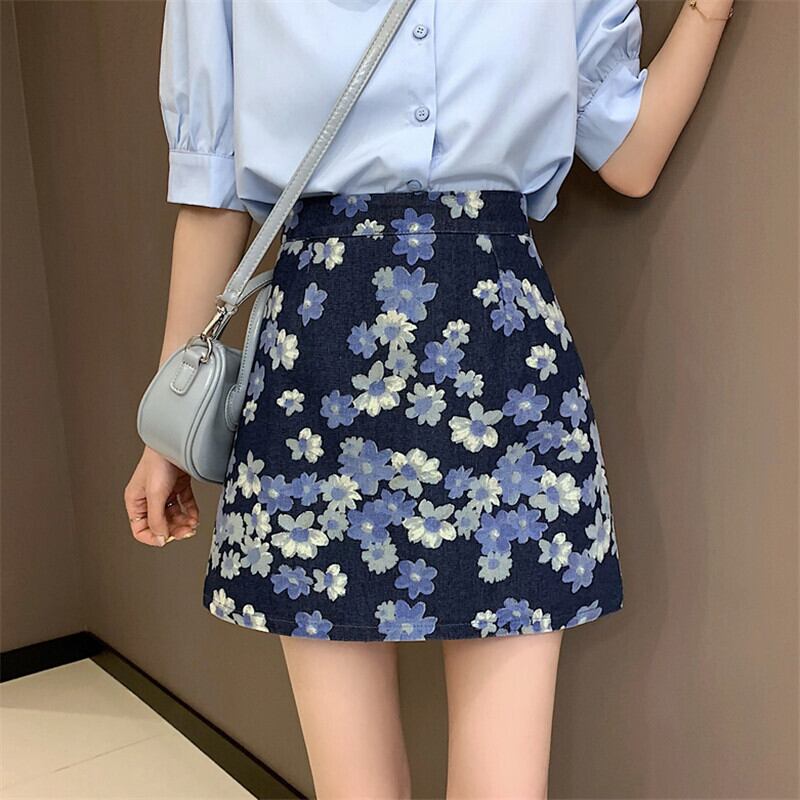 夏服韓国ファッションハイウェストウェストAラインショートスカート フローラル 夏物 花柄 スタイル ウエスト YY2603908911