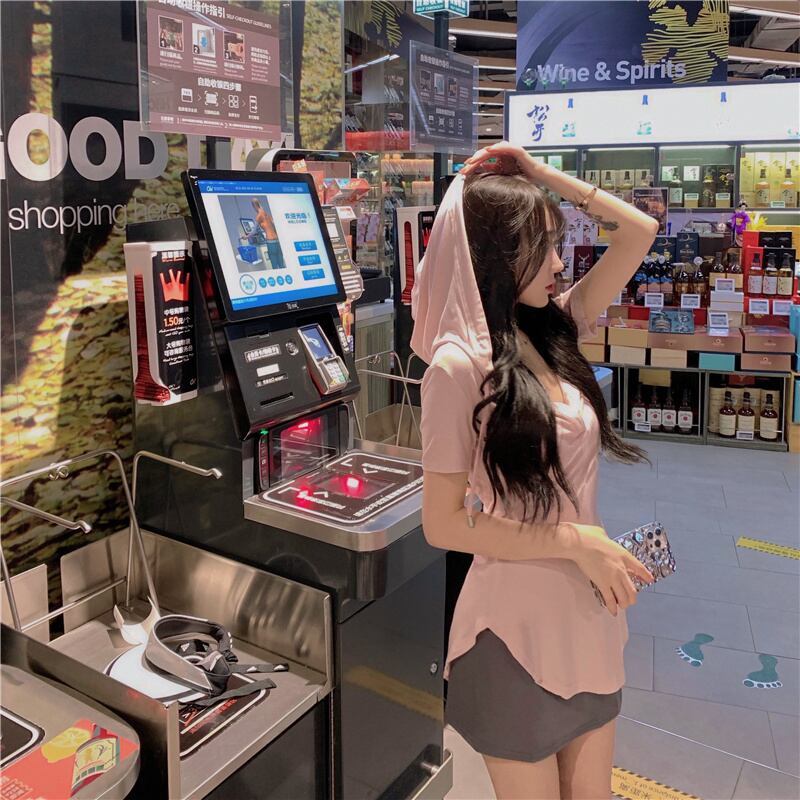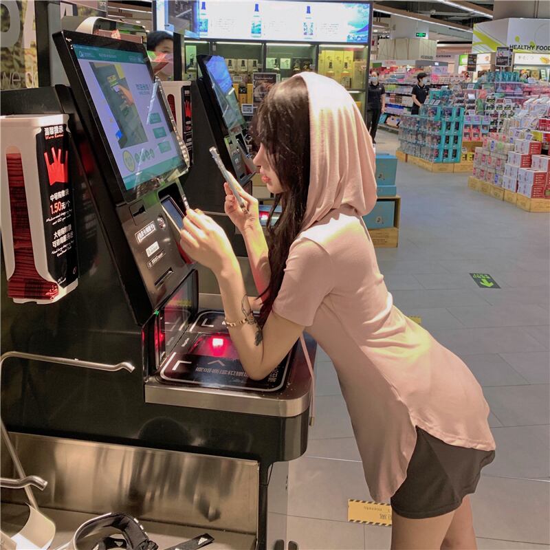 フードTシャツ夏服薄手スリムトップス ピンク 大人ガーリー スウィート キュート カジュアル 夏物 ピュア YY9853388778
