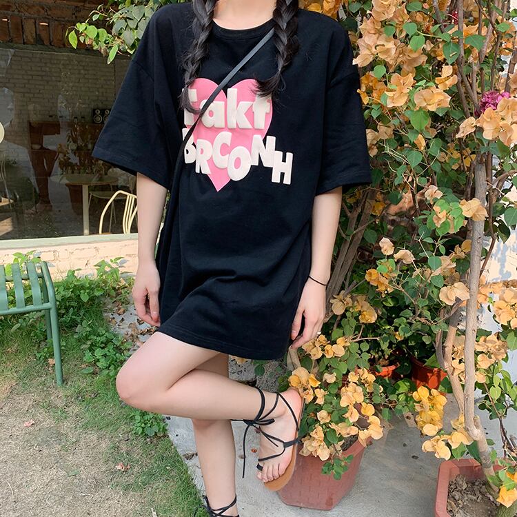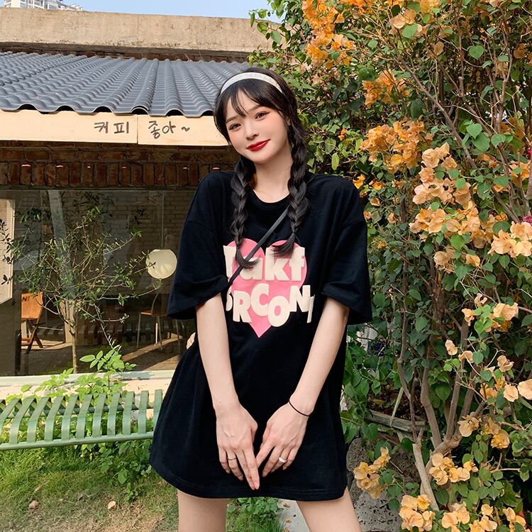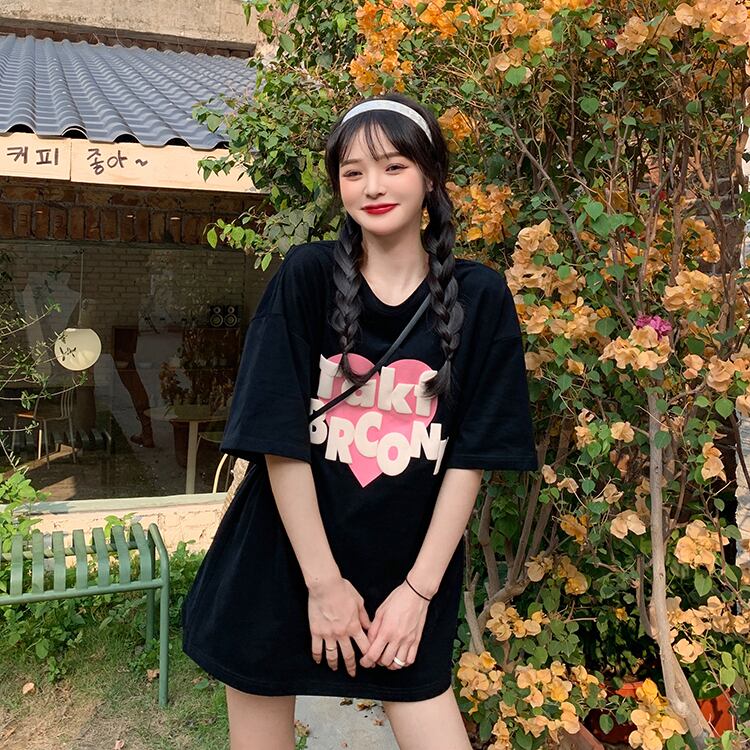 夏服韓国ファッションルーズラウンドネックプリントTシャツトップス レディース 夏物 Oネック スタイル ミドル丈 YY98145703382