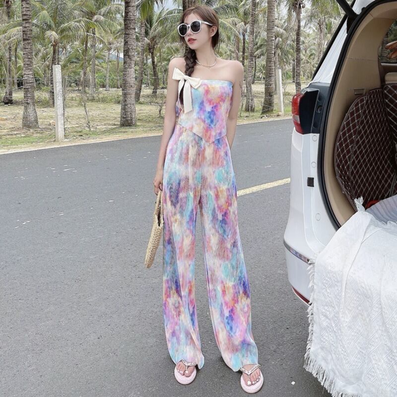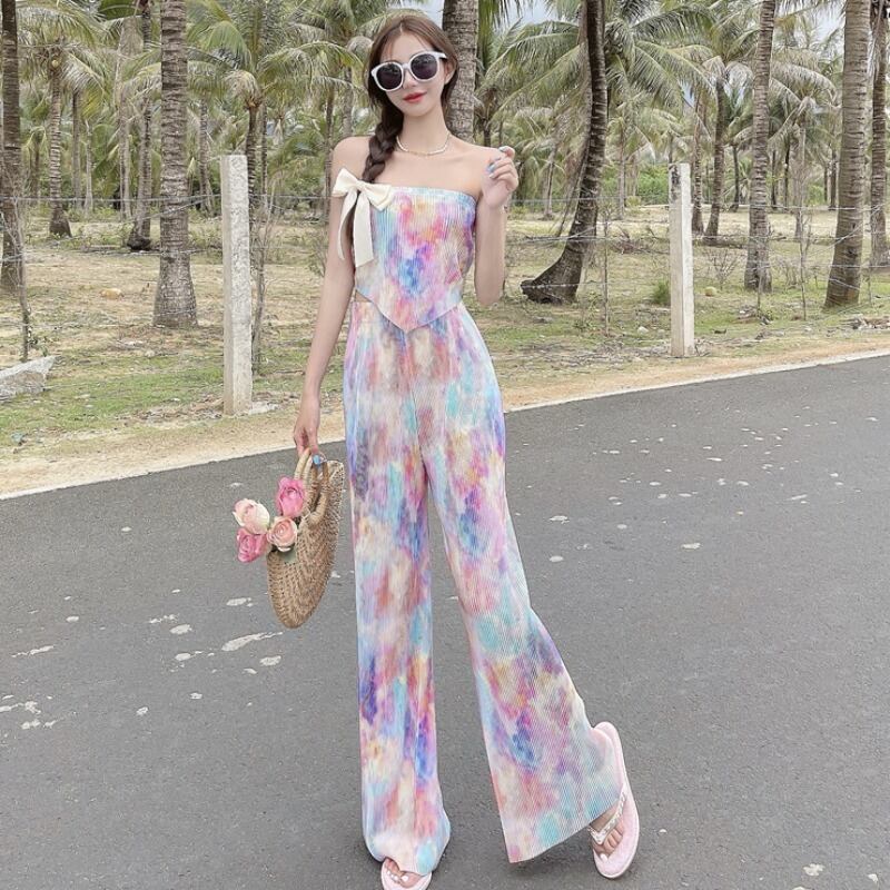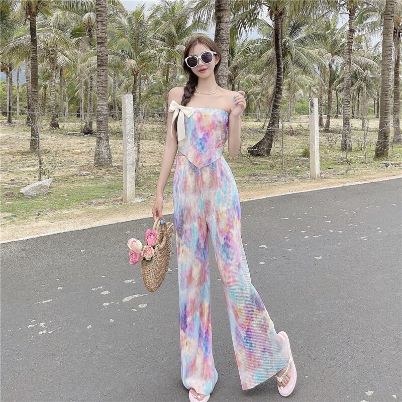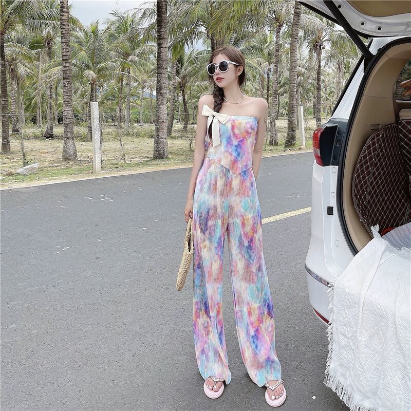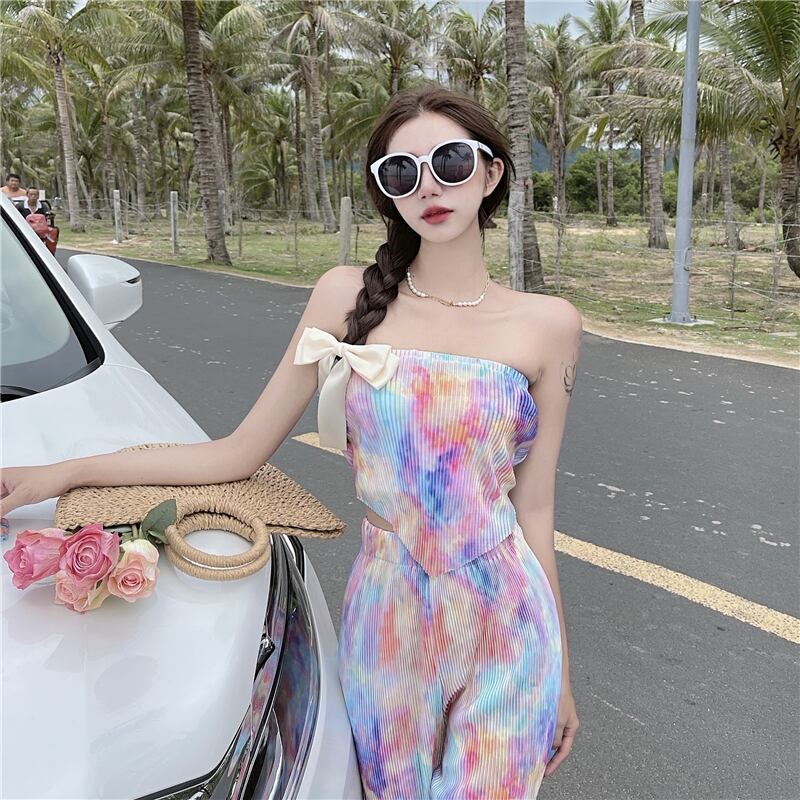 スタイルレディースプリーツトップス 薄手ハイウェストパンツ ウエスト YY13312307250