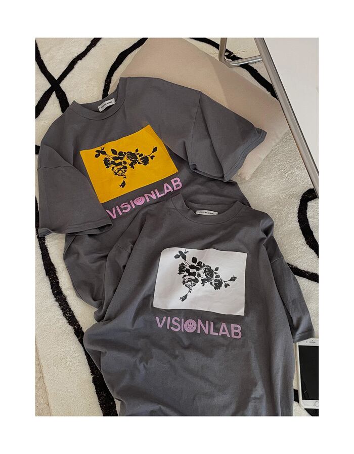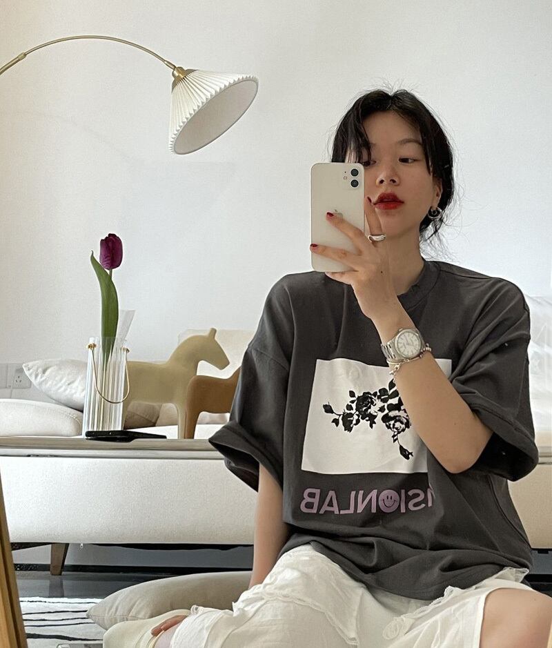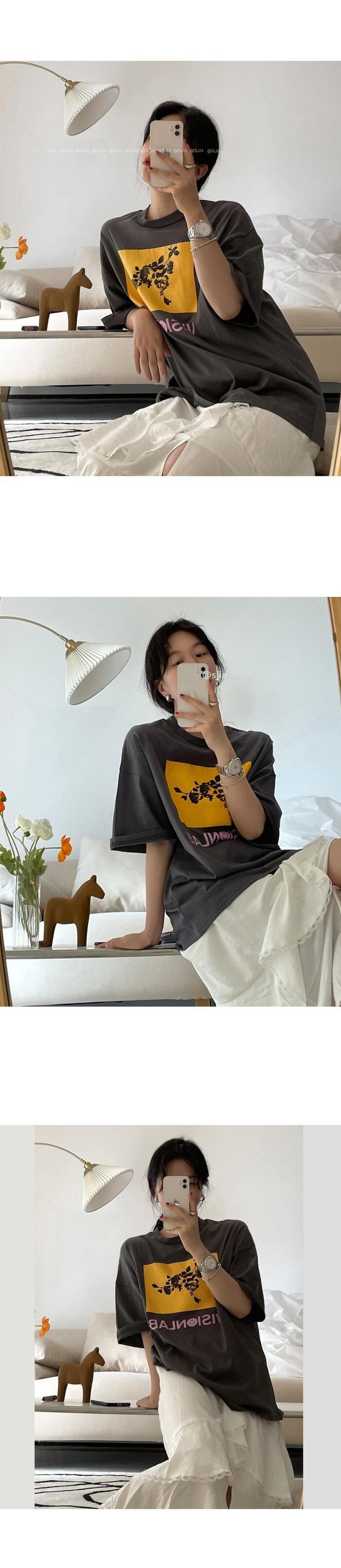 夏服韓国ファッションFlowerデザイン ルーズグレーTシャツトップス レディーストレンド 夏物 フラワーデザイン スタイル ミドル丈 YY58235791931