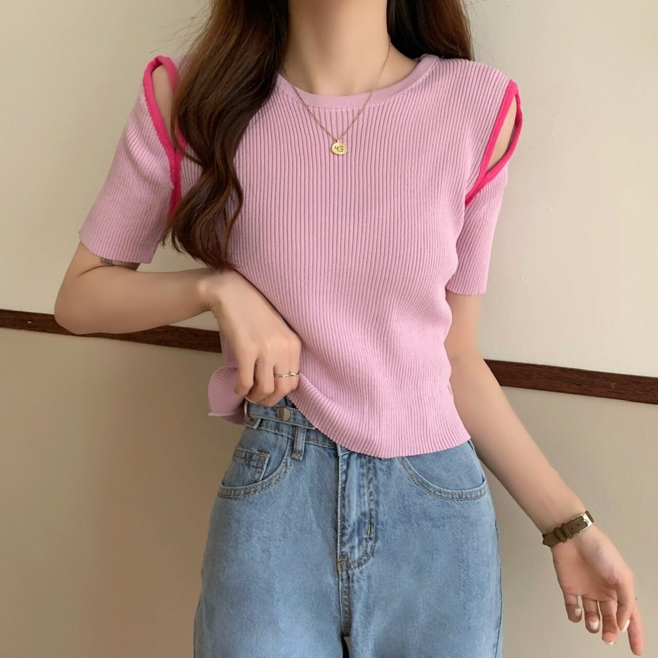 ストラップレスセーター 薄手夏服韓国ファッションTシャツ 夏物 YY44479636756