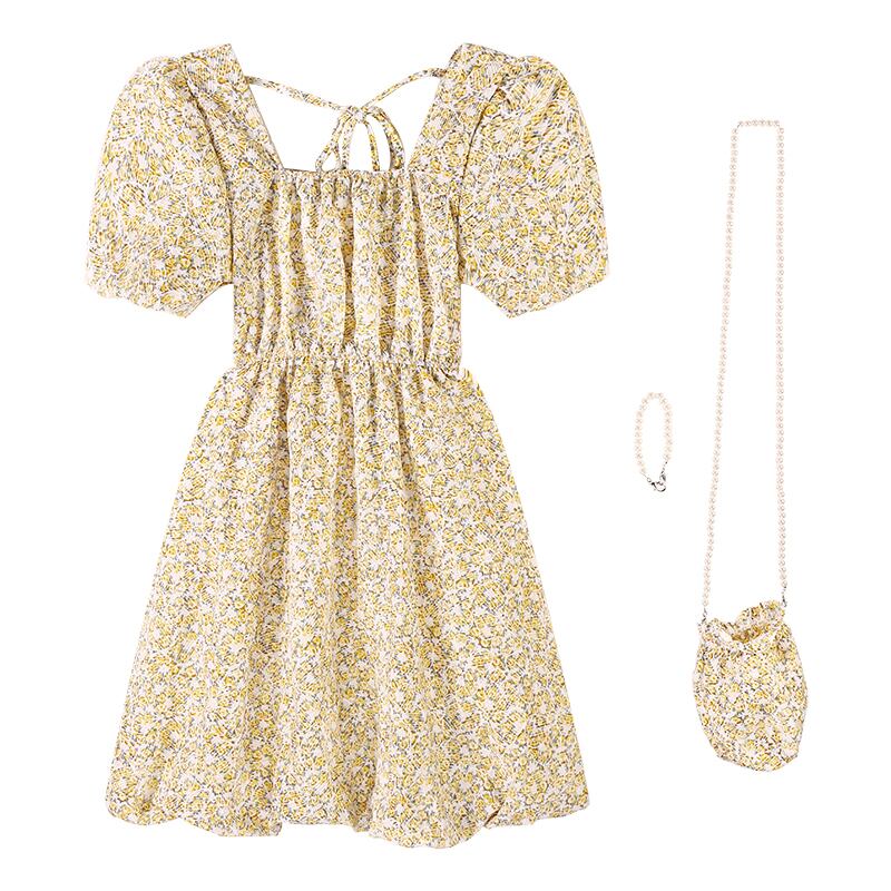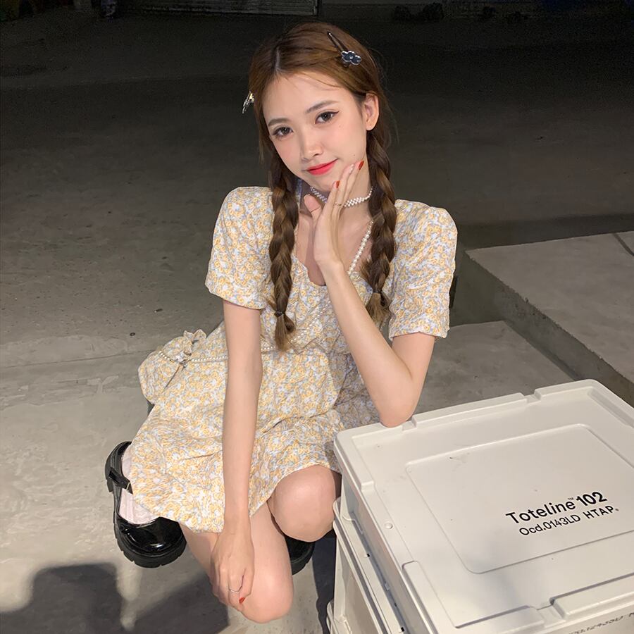 スリーブフローラルワンピースレディース夏服スタイルショートスカート 夏物 花柄 スクウェア SYJ6680286888