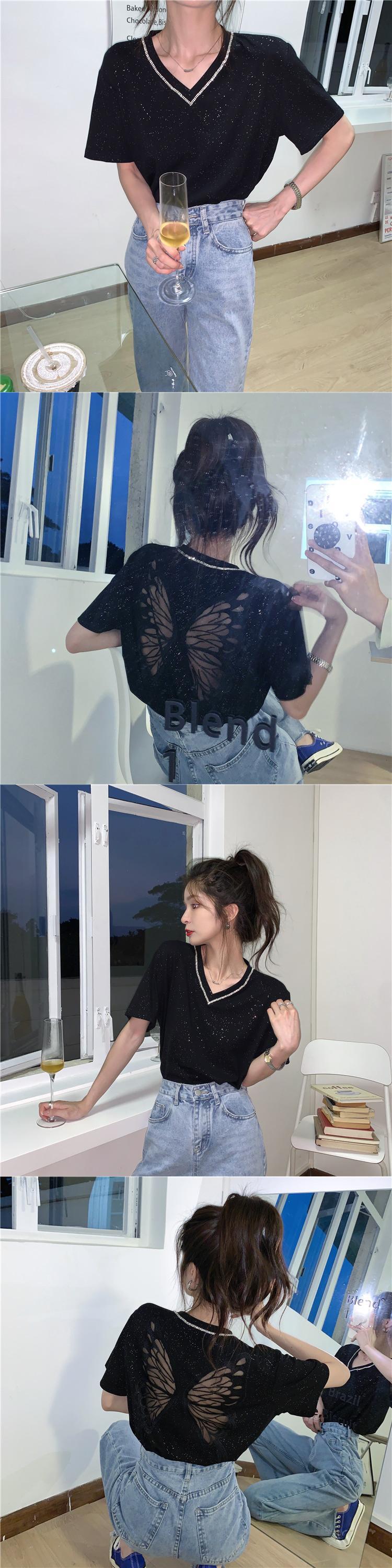 ホワイトVネックホルターTシャツレディース夏服スタイルトップス ストリート 夏物 YY6951509468