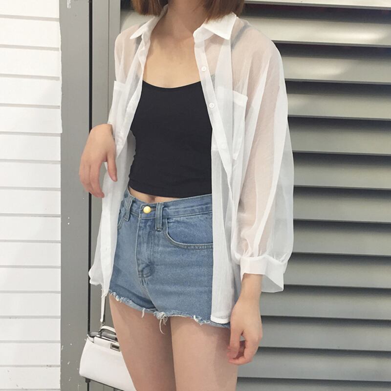 スプリング韓国ファッション薄手シフォンシャツ ジャケット ロング 春物 スタイル 長袖 SYJ25354346453
