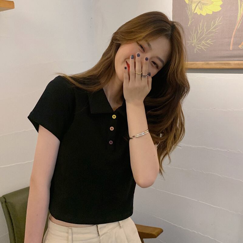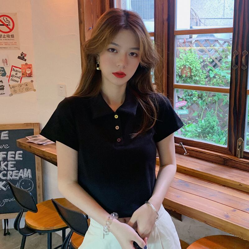 グレーショートTシャツシャツ レディーススリム夏服薄手トップス トレンド 夏物 YY300810585
