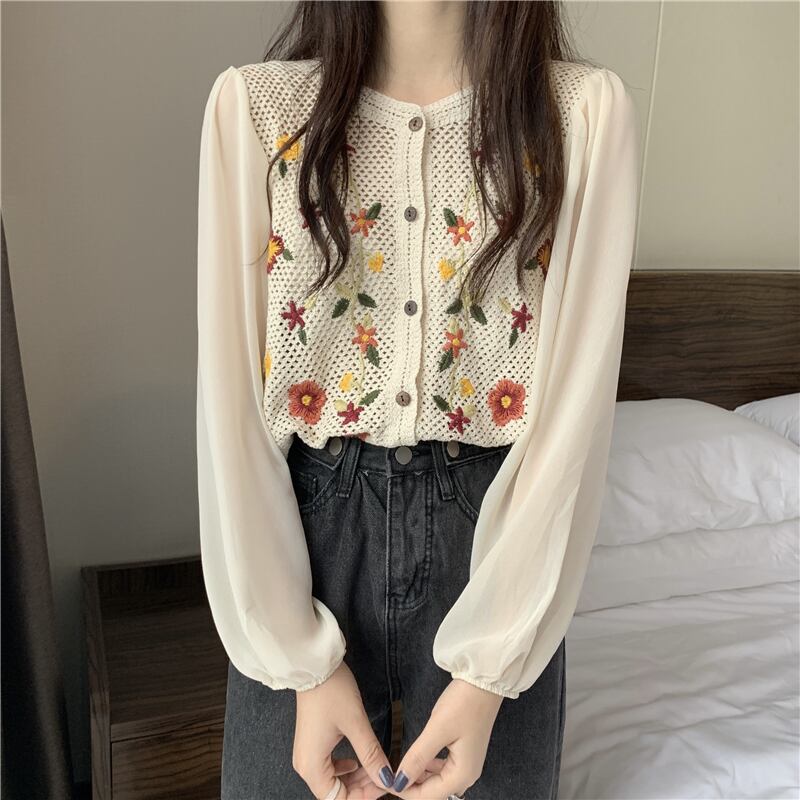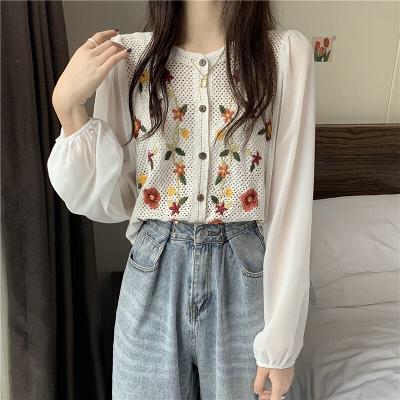 韓国ファッション夏服レースショートトップス シフォンシャツ 大人ガーリー スウィート キュート カジュアル 夏物 スタイル YY59294800187