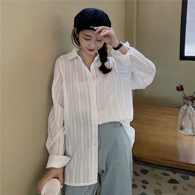 ホワイトシャツ レディーススタンダードスタイルスプリング秋物ルーズトップス ロング レトロ 春物 オータム 長袖 SYJ12516163973