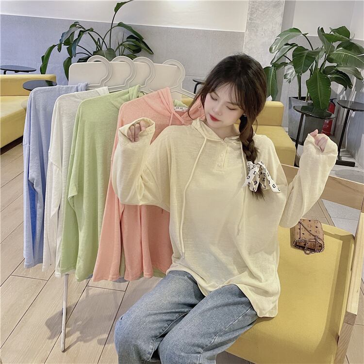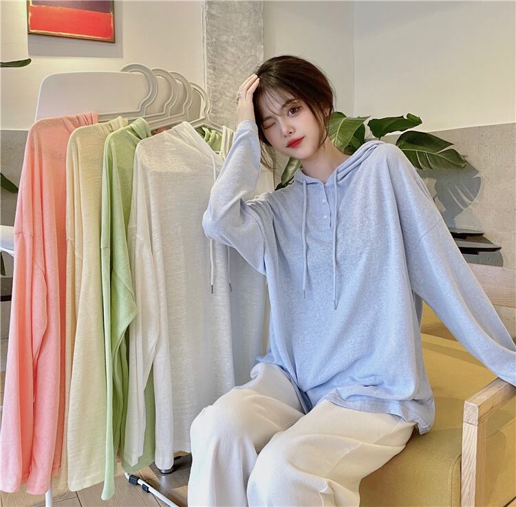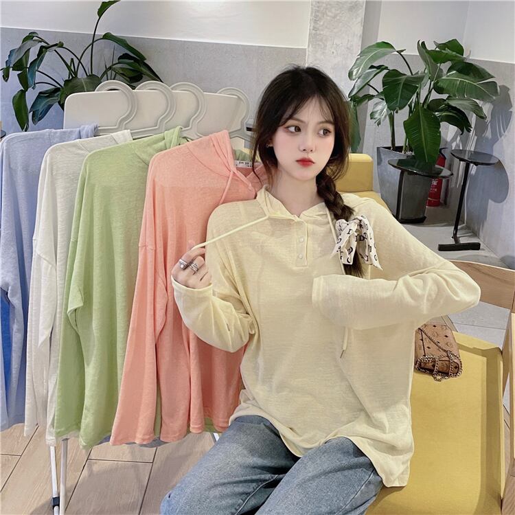 夏服スタイルトレンドフードルーズ薄手セーター ロング 夏物 長袖 YY24656378901