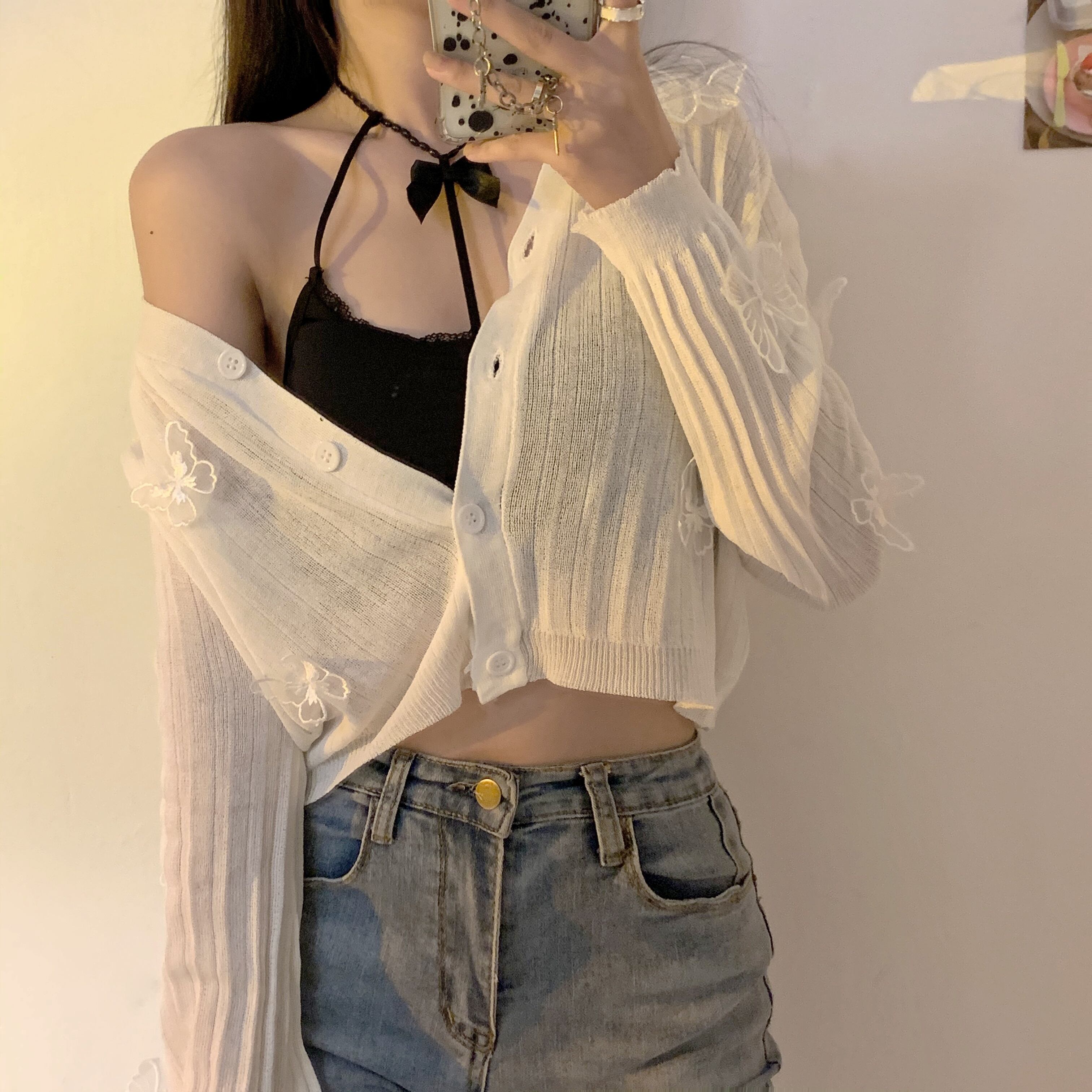 色:白いホルターストラップ,黒のホルターストラップ,ミントグリーンカーディガン,白いカーディガン,ブラックカーディガン,太郎パープルカーディガン,ブルーカーディガン,カウブルーカーディガン