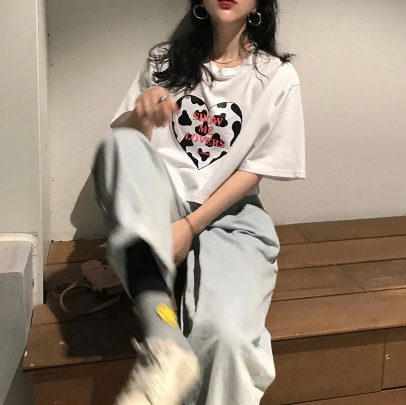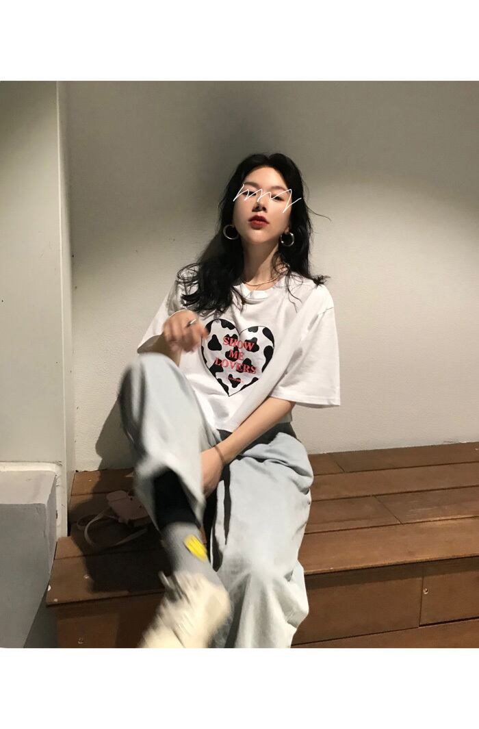 韓国ファッションスタイルルーズショートゆったりシャツ トップス 夏服プリント柄Tシャツレディース 夏物 YY63710560436