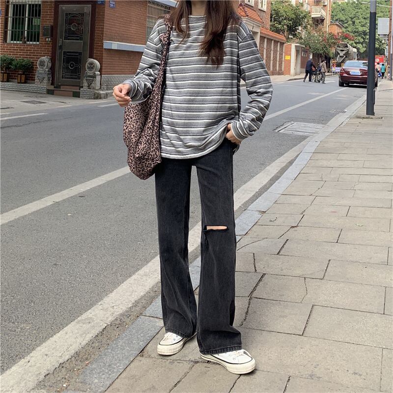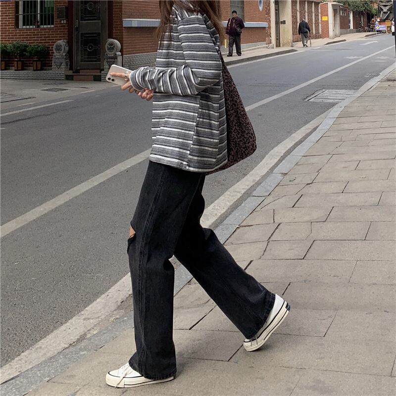 ブラックジーンズ ルーズ夏服薄手ハイウェストウェストワイドレッグパンツ トレンド 夏物 ワイドパンツ ウエスト SYJ82448740460
