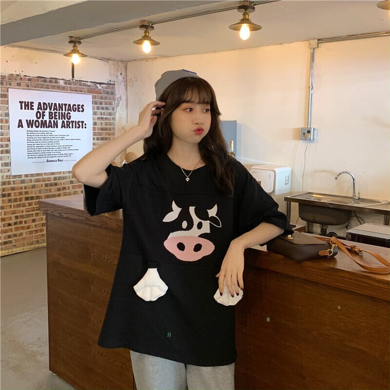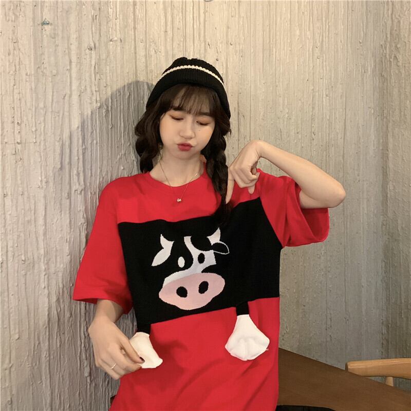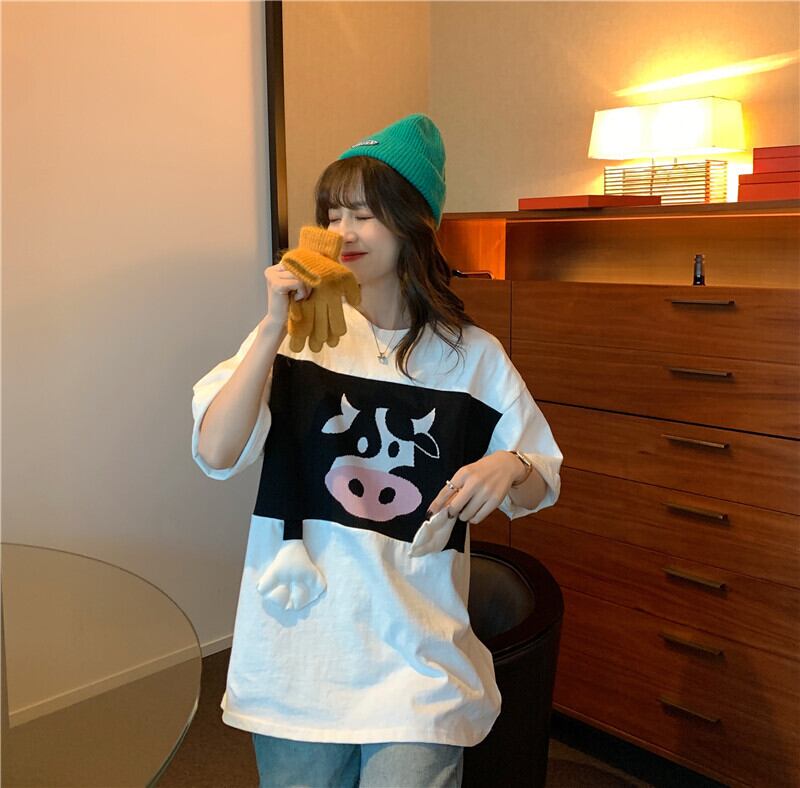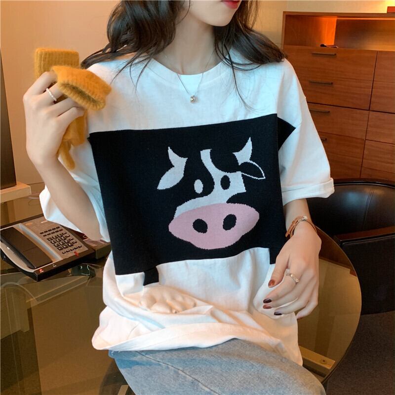 プリントレディース夏服韓国ファッションルーズ薄手Tシャツトップス 大人ガーリー スウィート キュート カジュアル 夏物 スタイル YY29095702349