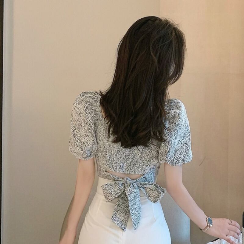 夏服スタイルスリーブバックリボンショートレースシャツ トップス 夏物 YY54899002739