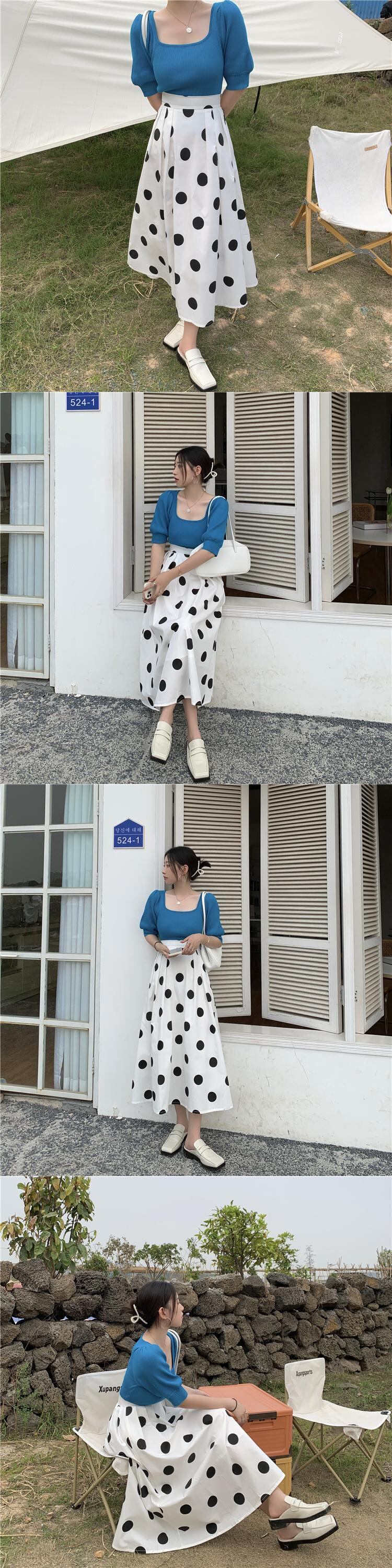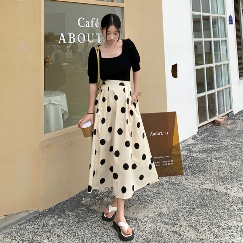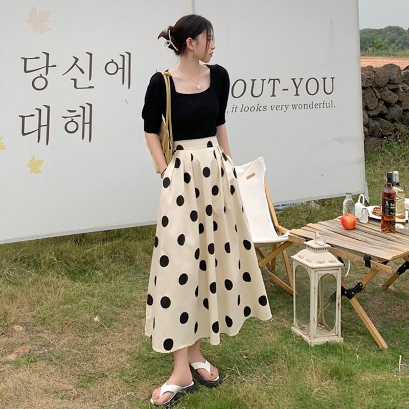 水玉スカート 夏服Aライン 夏物 ミドル丈 SYJ34349705812