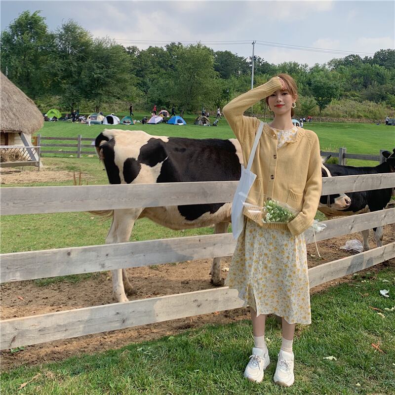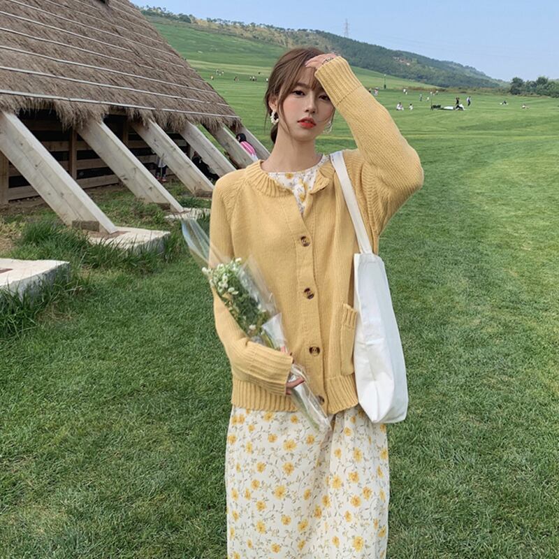 色:黄色いセーターワンピース,黄色のスカートワンピース