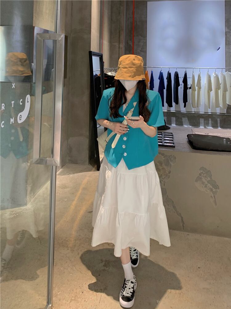 ホワイトスカート レディース夏服ハイウェスト薄手Aラインロング 夏物 ウエスト ミドル丈 SYJ61833214565