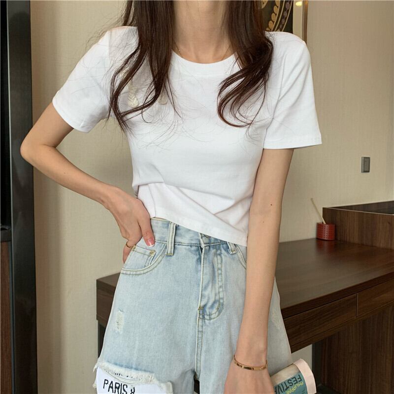 スリムTシャツシャツ レディース夏服スタイルスタンダードショートトップス ゆったり レトロ 夏物 YY94548429670