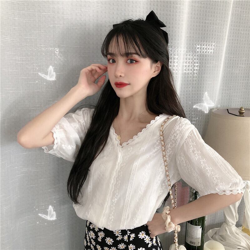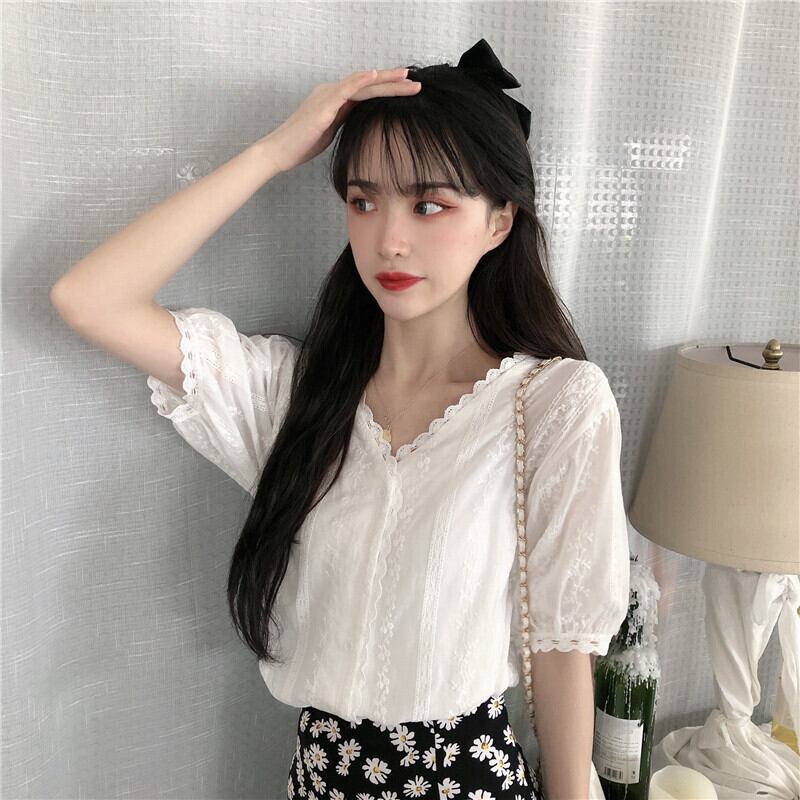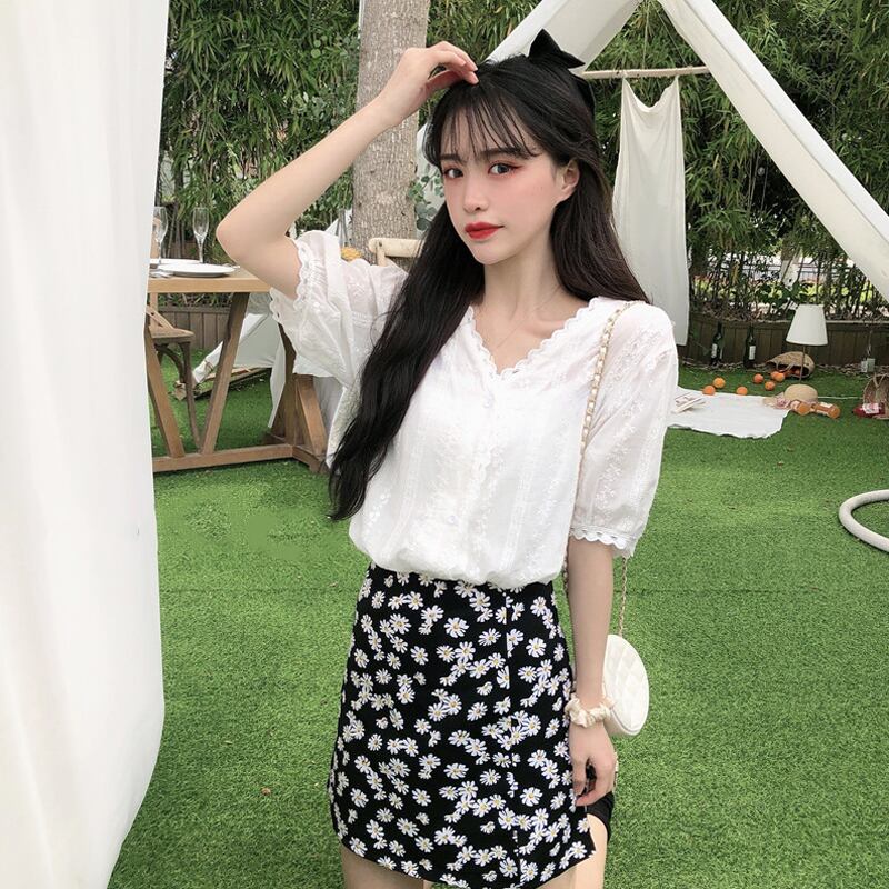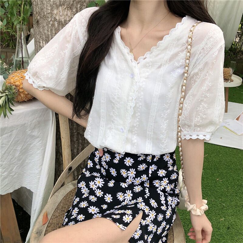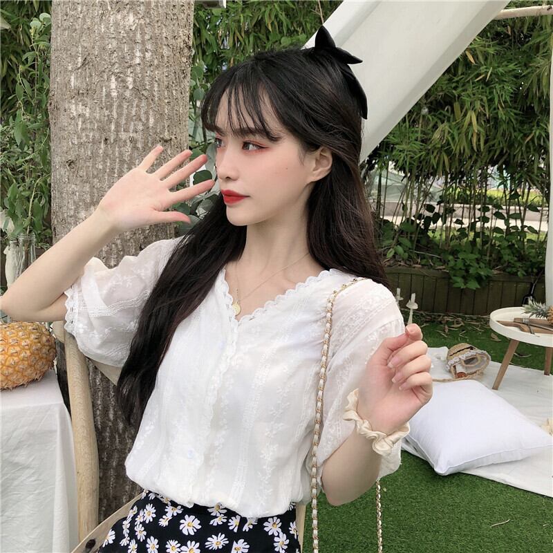 ホワイトシャツ レディーススタンダード夏服Vネックワンピース レトロ 夏物 SYJ30306018641