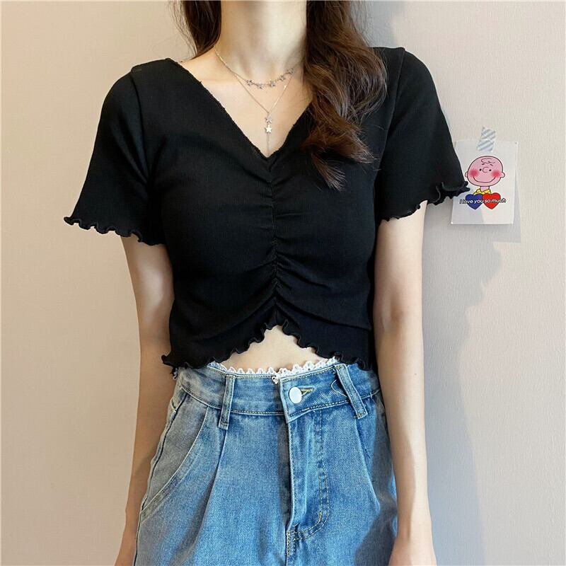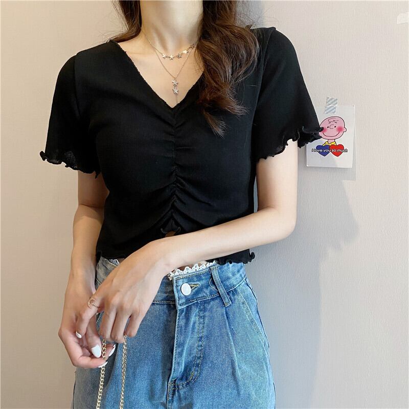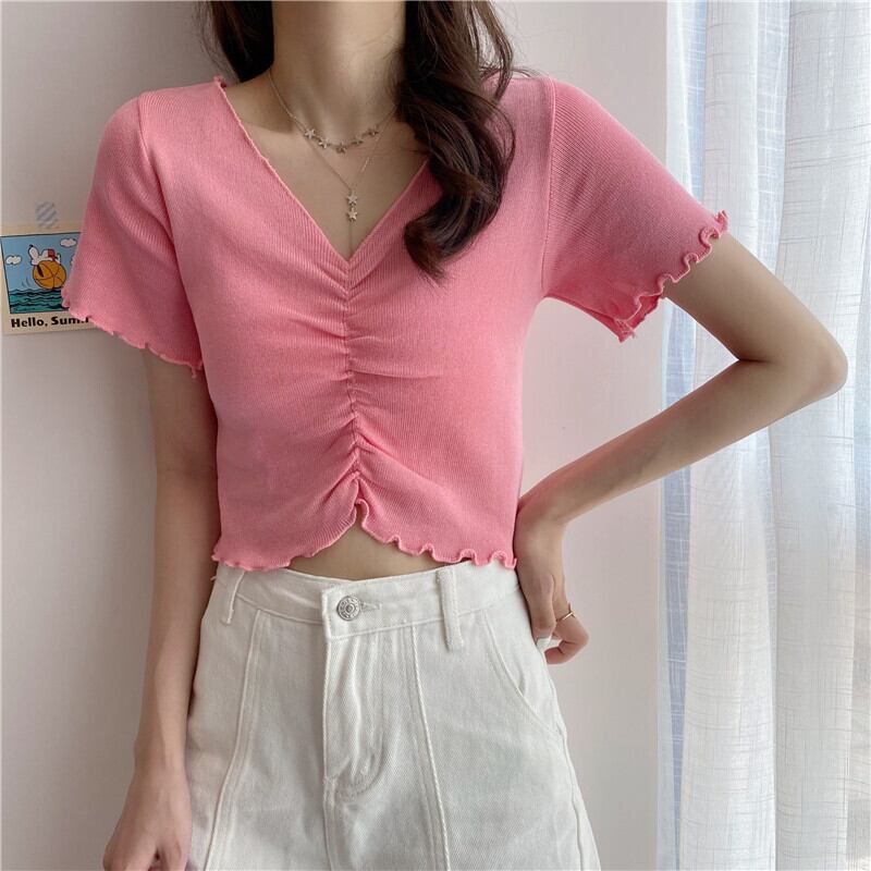 夏服VネックホワイトショートTシャツレディーススタイルハイウェストワンピース 夏物 ウエスト YY53507814838