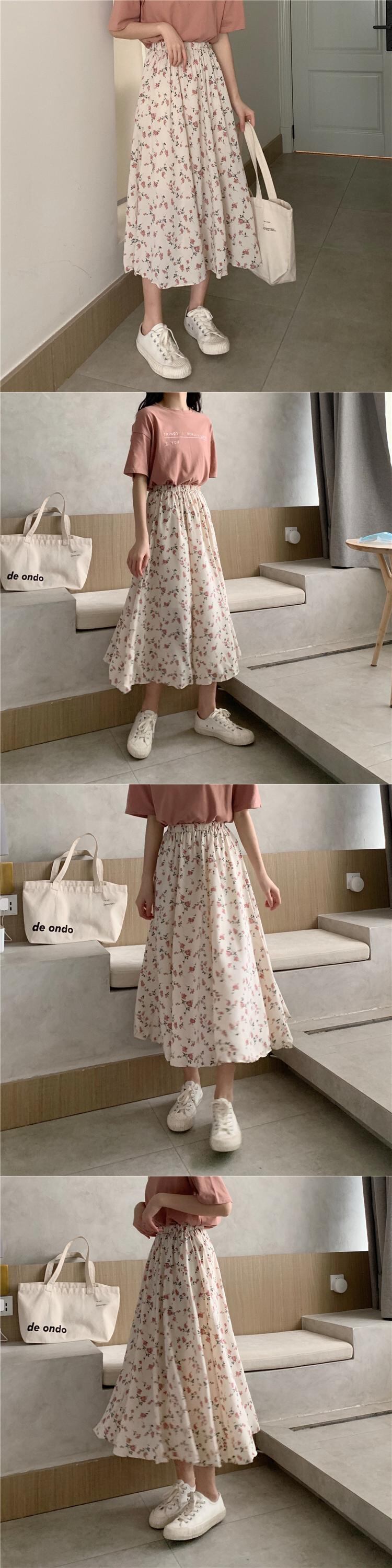 フローラルスカート ハイウェストAライン夏服シフォンロング 夏物 花柄 ウエスト ミドル丈 SYJ96191306930
