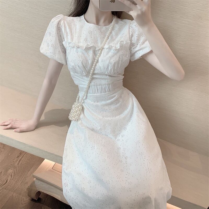 ホワイトワンピース夏服ウェストロングスカート 夏物 ウエスト SYJ49452936380