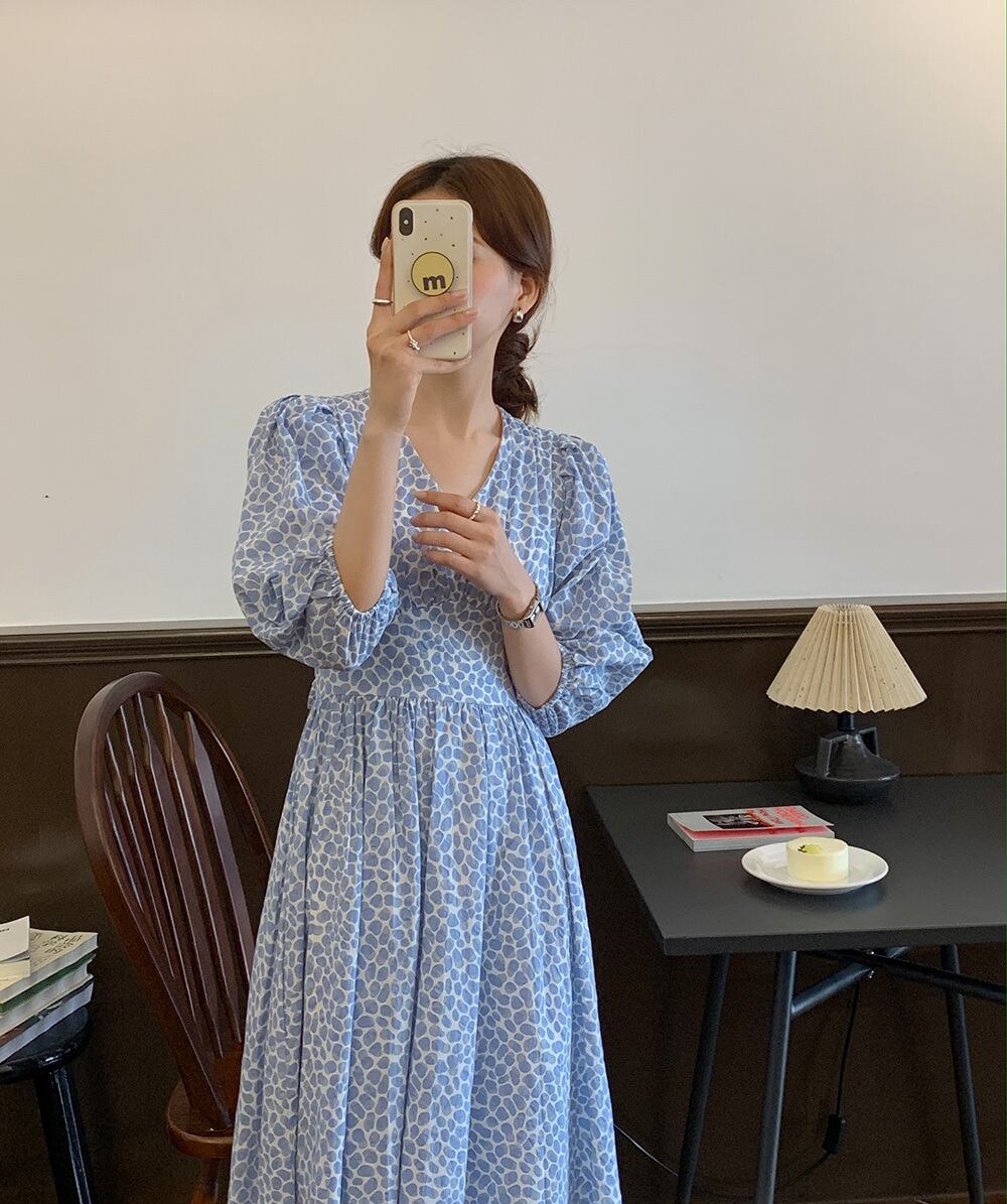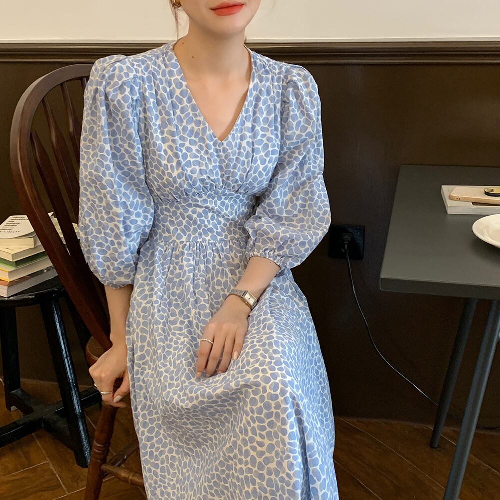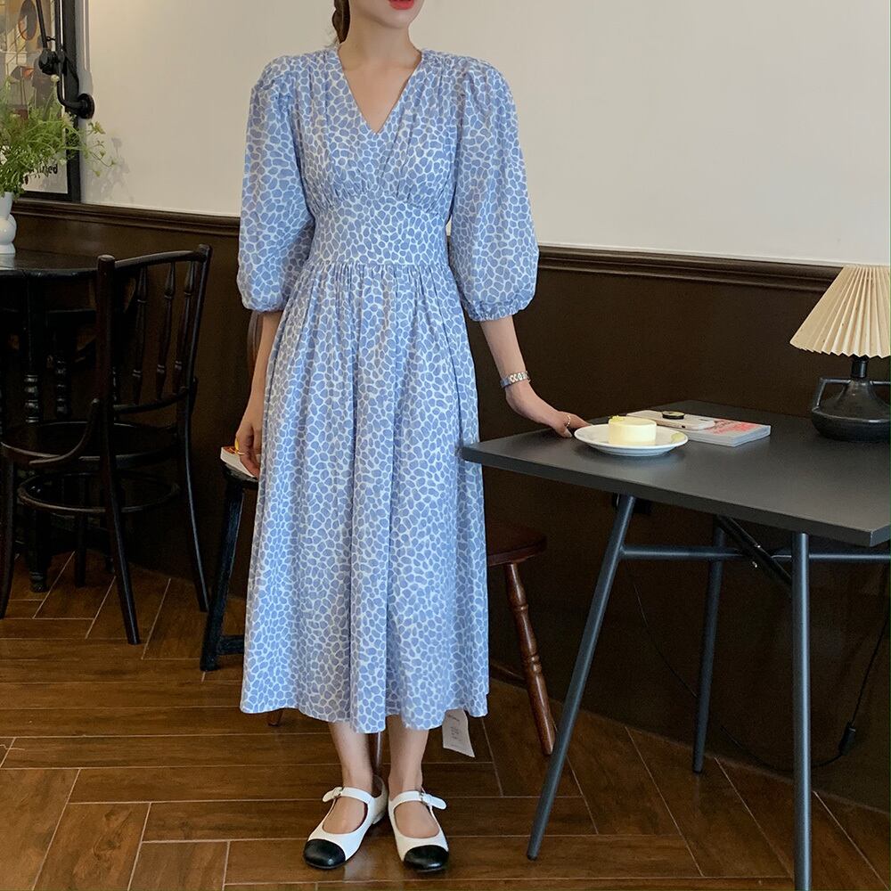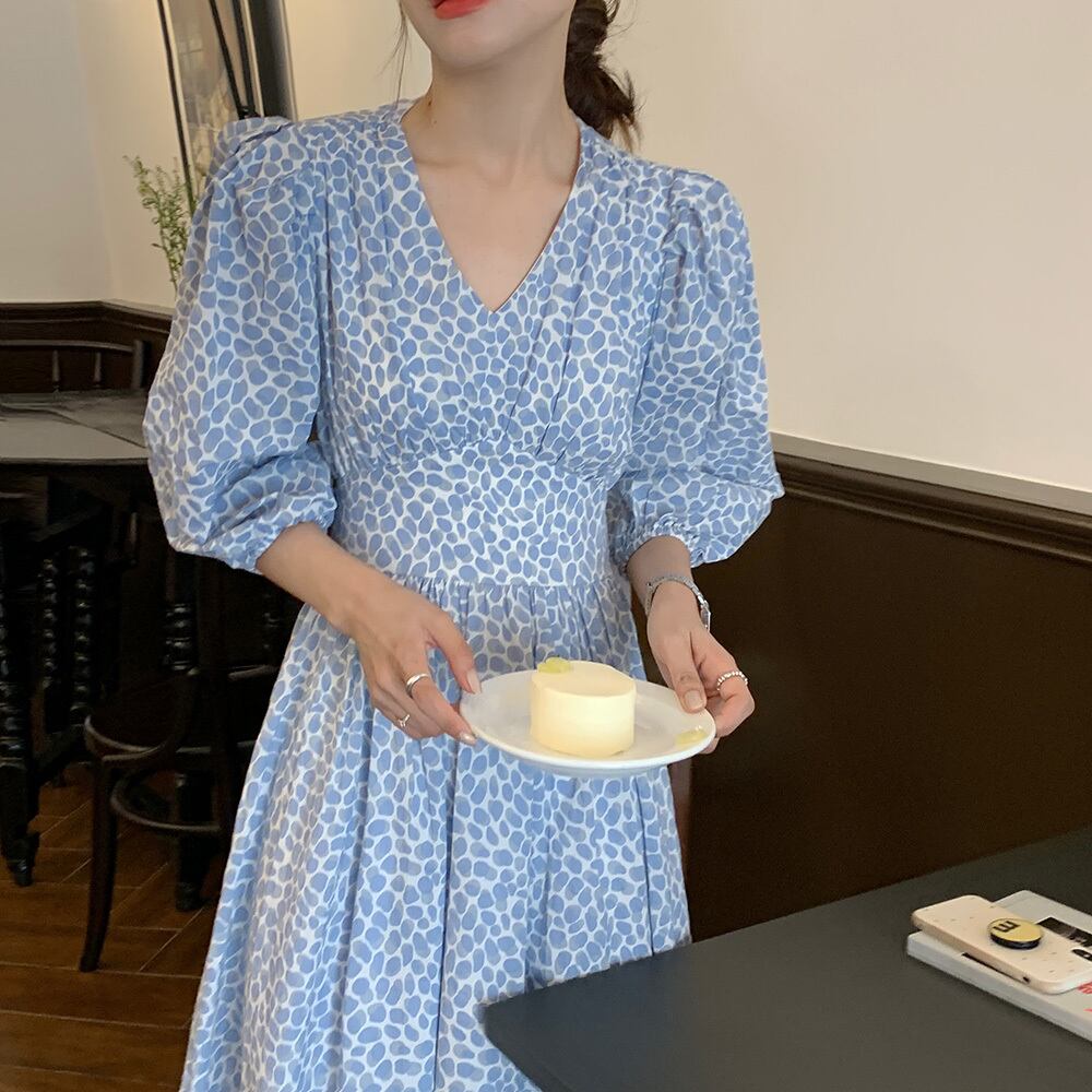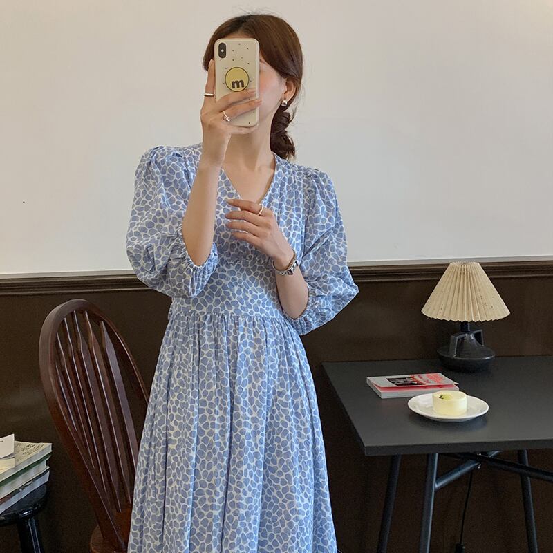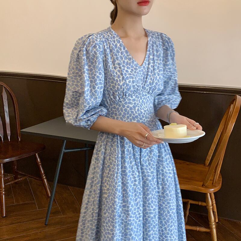 スリーブフローラルワンピースレディース夏服ウェストロングスカート 夏物 花柄 ウエスト SYJ50988090296