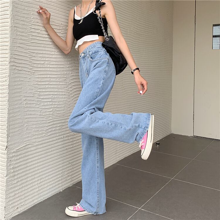 薄手ハイウェストジーンズ レディースルーズ夏服パンツ レッド 夏物 ウエスト SPM43287706416